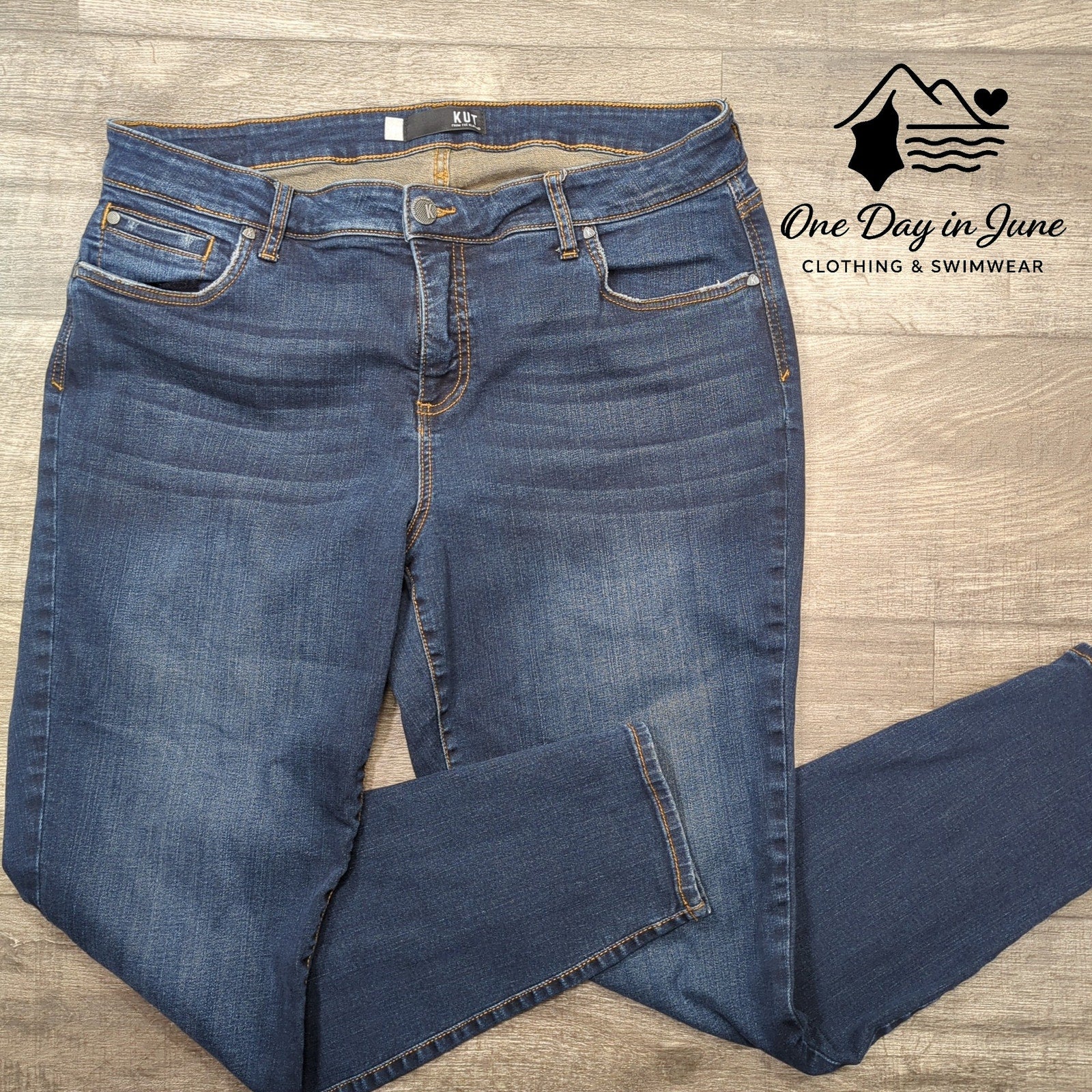 These fabulous blue jeans are Kut from the Kloth, with a fit that's so slick, they'll flatter your form from your toes to your hips! Gently used but ready to shine, these cotton-blend skinnies are simply divine.