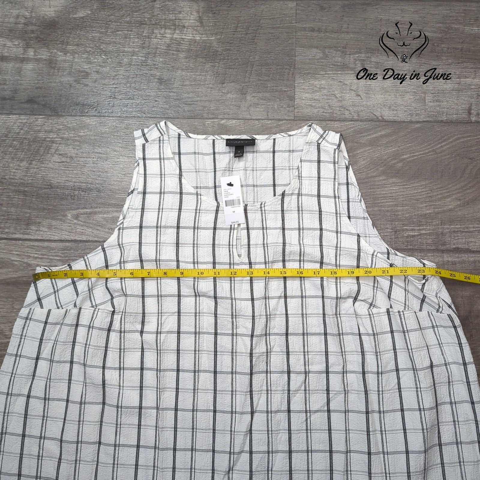 Dazzling white tank top from Lane Bryant that drapes with graceful fluidity against the skin. A pristine blend of rayon, polyester, and spandex creates an effortless silhouette perfect for summer soirées or casual afternoons on the veranda, still bearing its original tags like a debutante's first corsage.