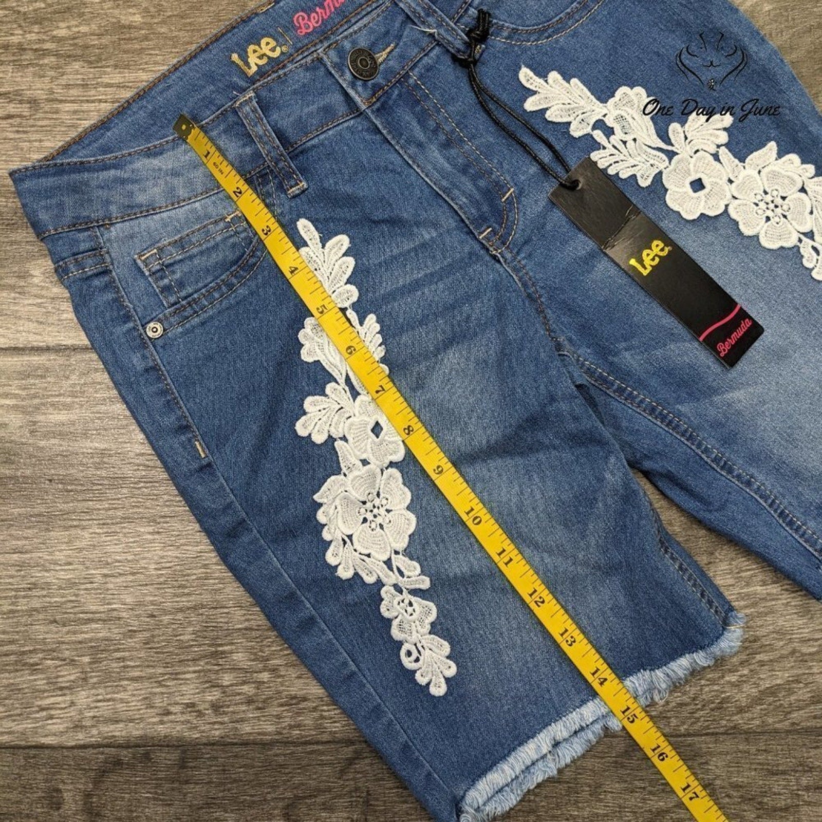 Lee Super Stretch Adjustable Waist Bermuda Jean Shorts Size 14
