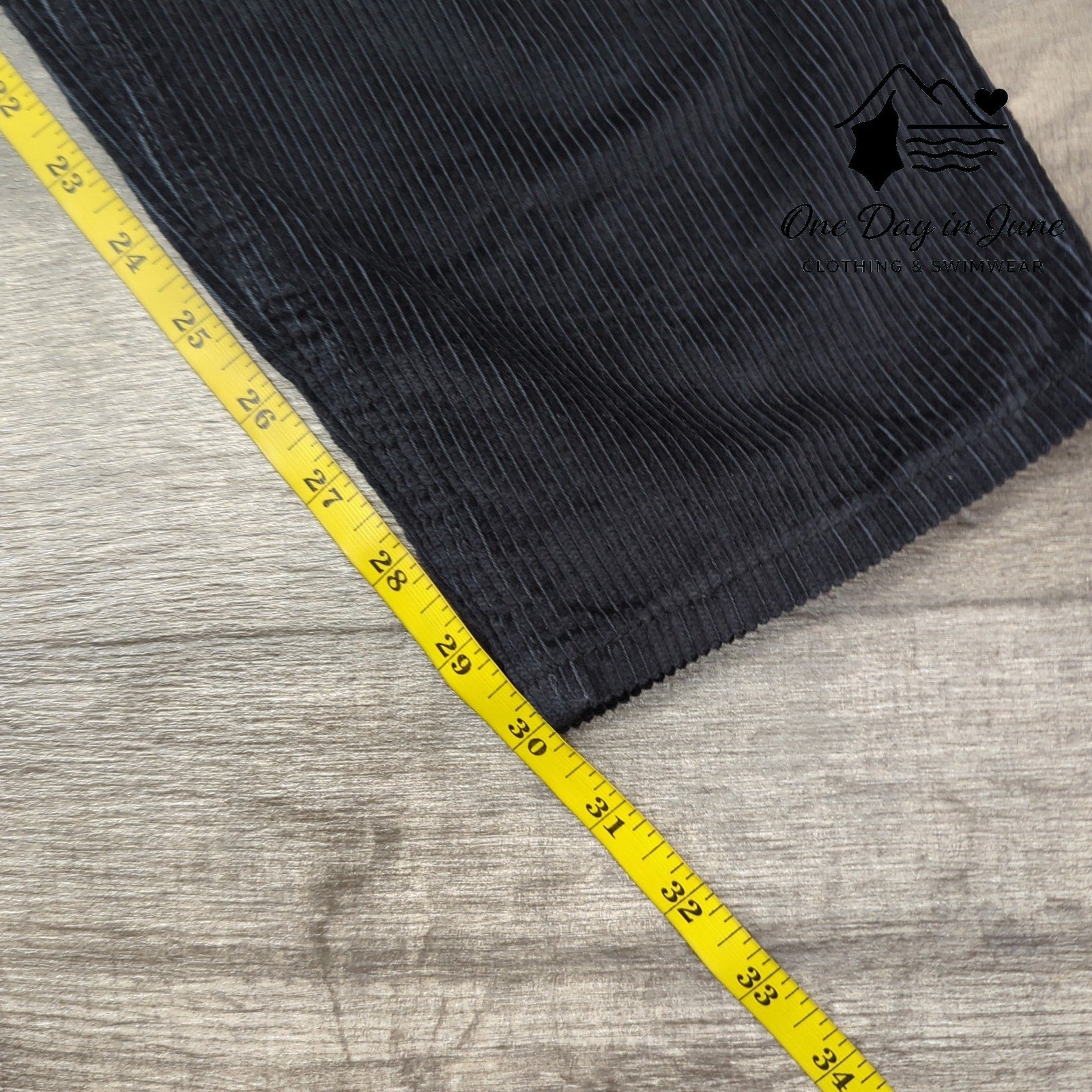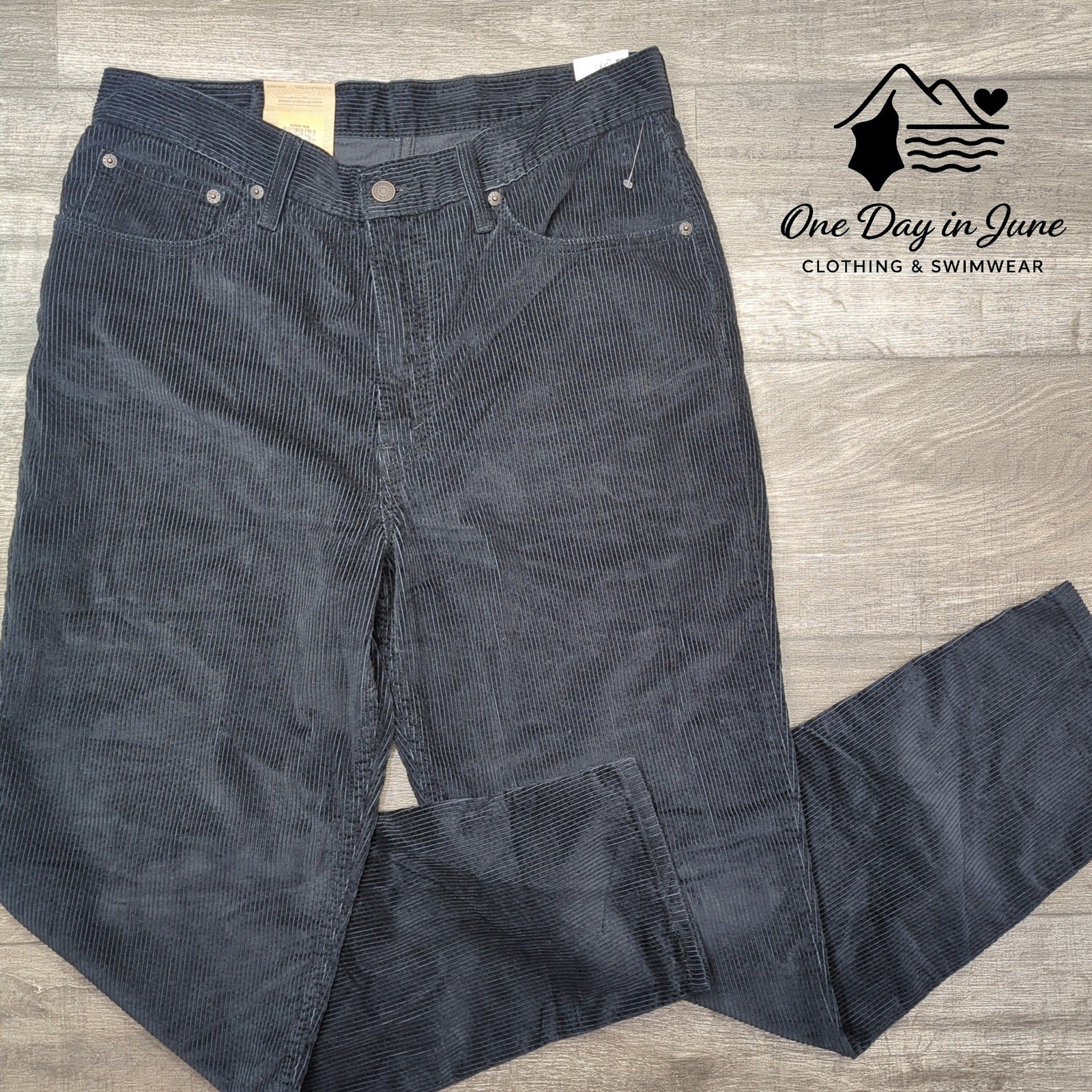 With a twist and a flare in fabric so fine, these black corduroy Levi's will make your style shine! High-waisted mom jeans, brand new to behold, they're waiting to keep you both cozy and bold.