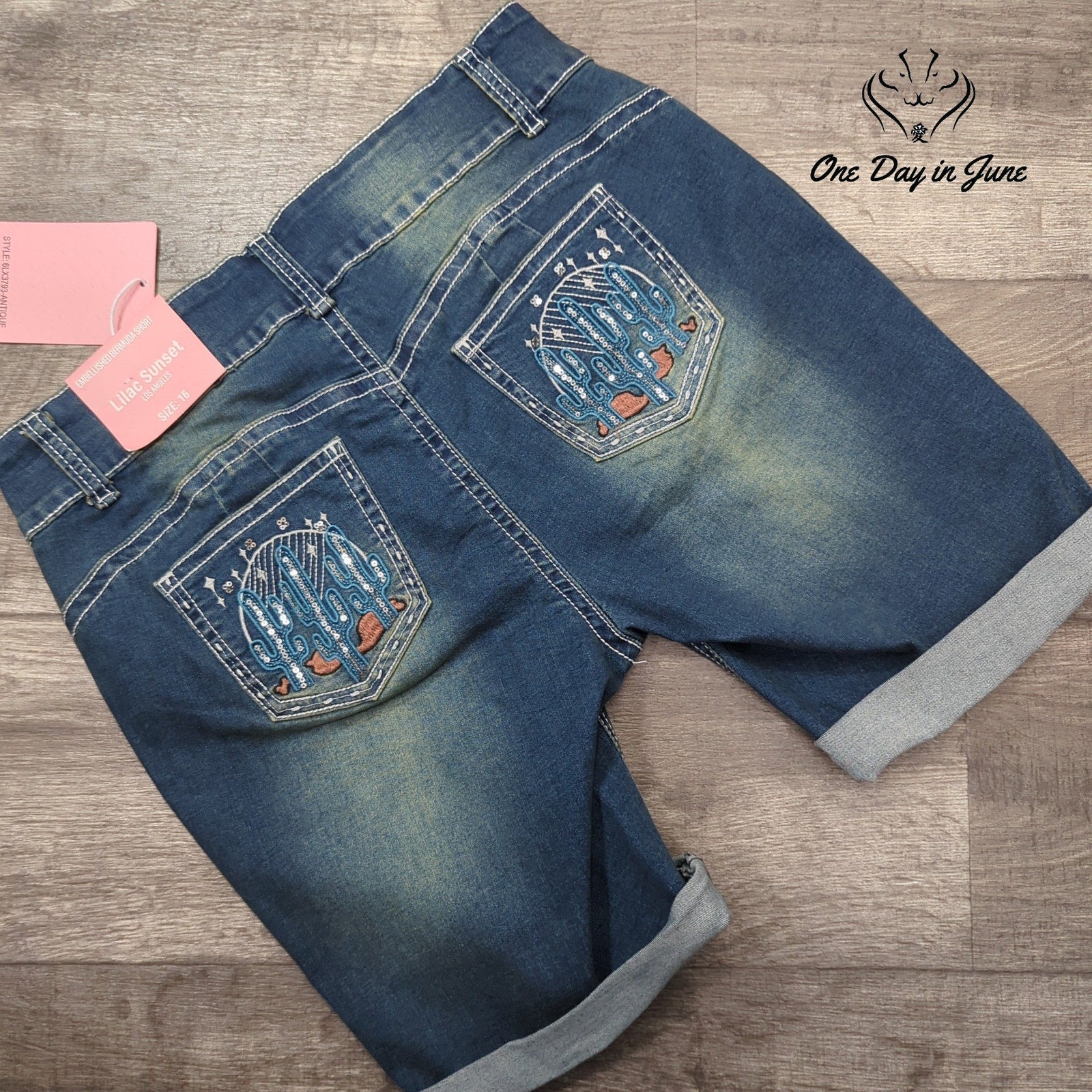 The savage spirit of summer burns bright in these crystalline-encrusted denim beauties from Lilac Sunset, where raw American craftsmanship meets the glittering madness of a rhinestone rodeo. These Bermuda shorts are a testament to the raw power of cotton-blend comfort, stretching and flexing like a serpentine ballet dancer caught in the grip of a midsummer fever dream, while the strategic embellishments catch the light like a thousand tiny mirrors in a funhouse designed by Salvador Dali himself.