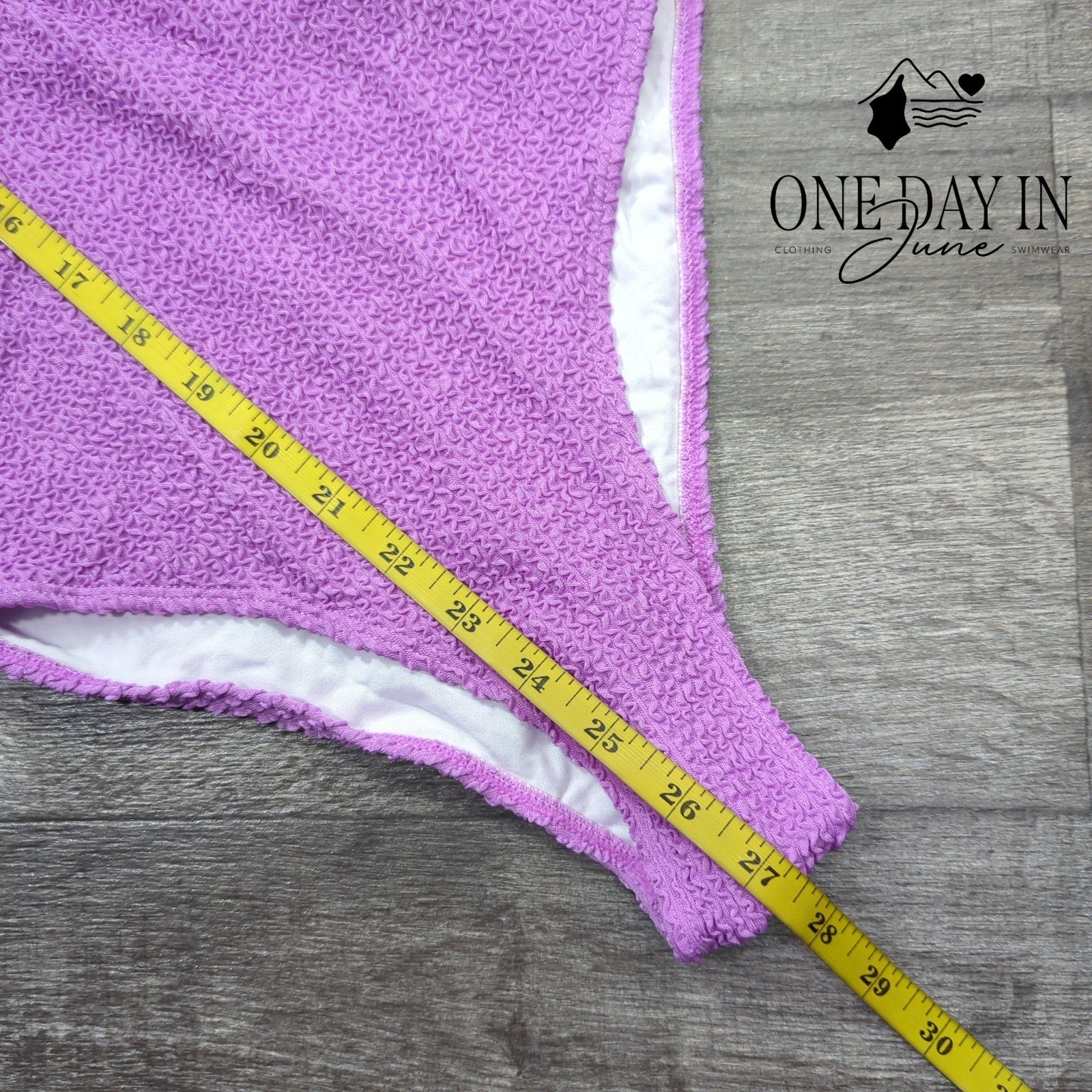 This purple one-shoulder wonder with smocking so fine will make you look fabulous at the beach or poolside! With a fit that's just right and a style that's pure fun, you'll splash and you'll swim underneath the bright sun!