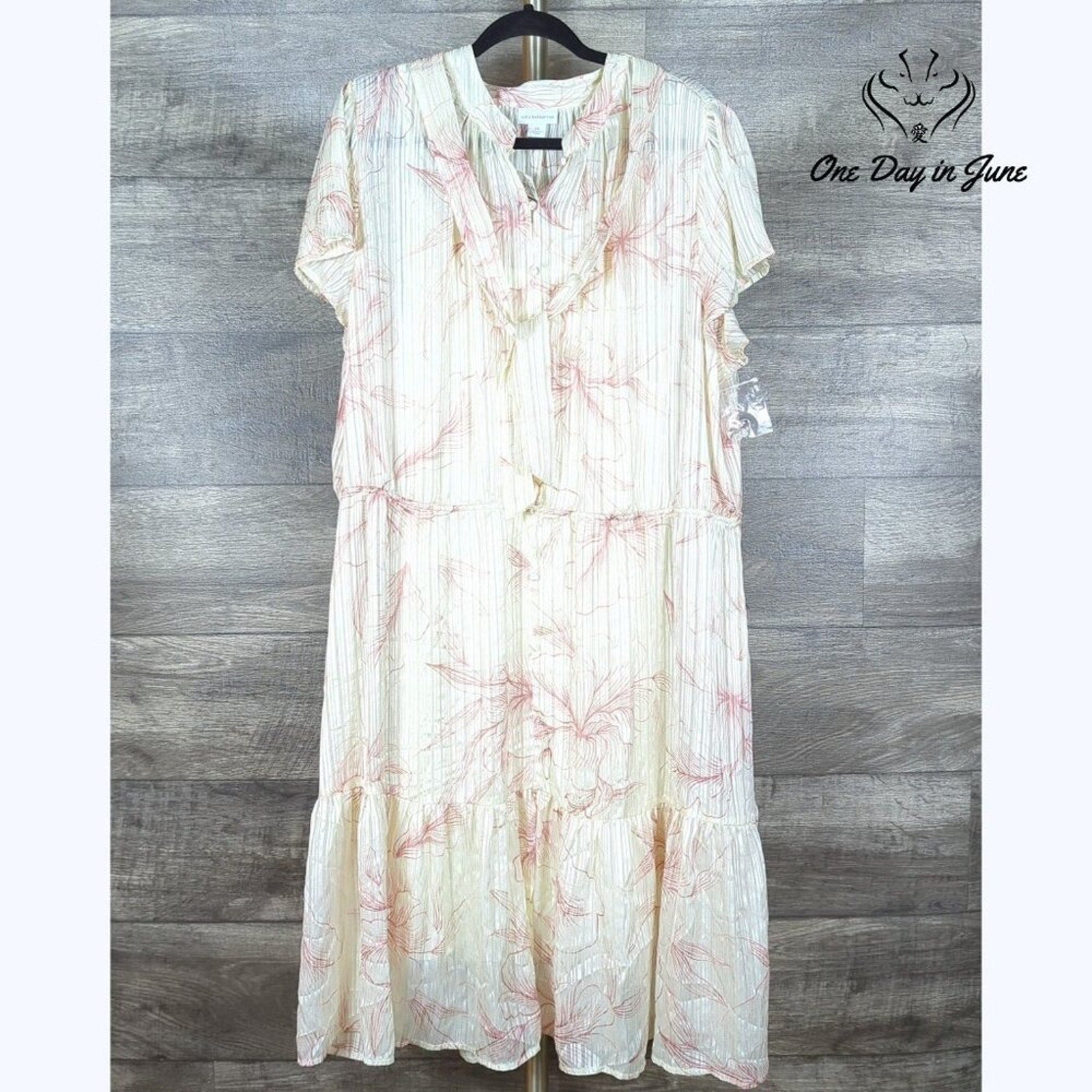 Liz Claiborne Crema Floral Layered Short Sleeve Dress Size 2X