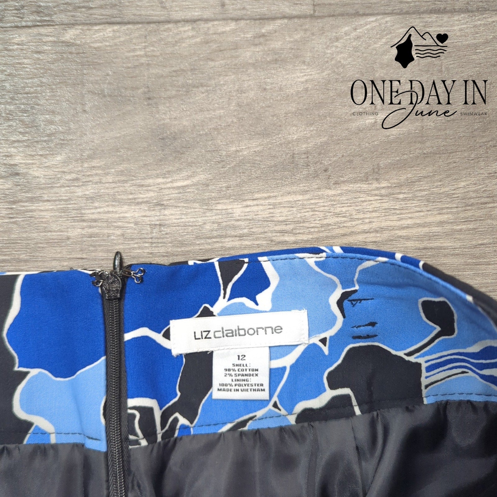 Oh my stars, what a sight to behold - a pencil skirt in blue so bold! With flowers that dance and cotton so fine, this Liz Claiborne beauty will make you shine!