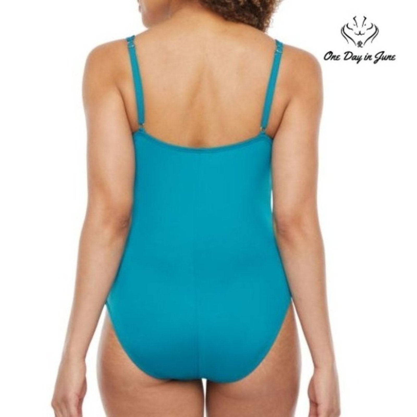 The glimmering jade fabric ripples like a desert mirage, taunting me with its pristine tags still swaying in the artificial department store breeze, while the sleek silhouette of this Liz Claiborne one-piece beckons with the promise of chlorinated salvation. This is pure aquatic armor, crafted from a stretchy synthetic blend that clings like a second skin, perfect for those savage poolside adventures where style and function wage their eternal war against the elements.