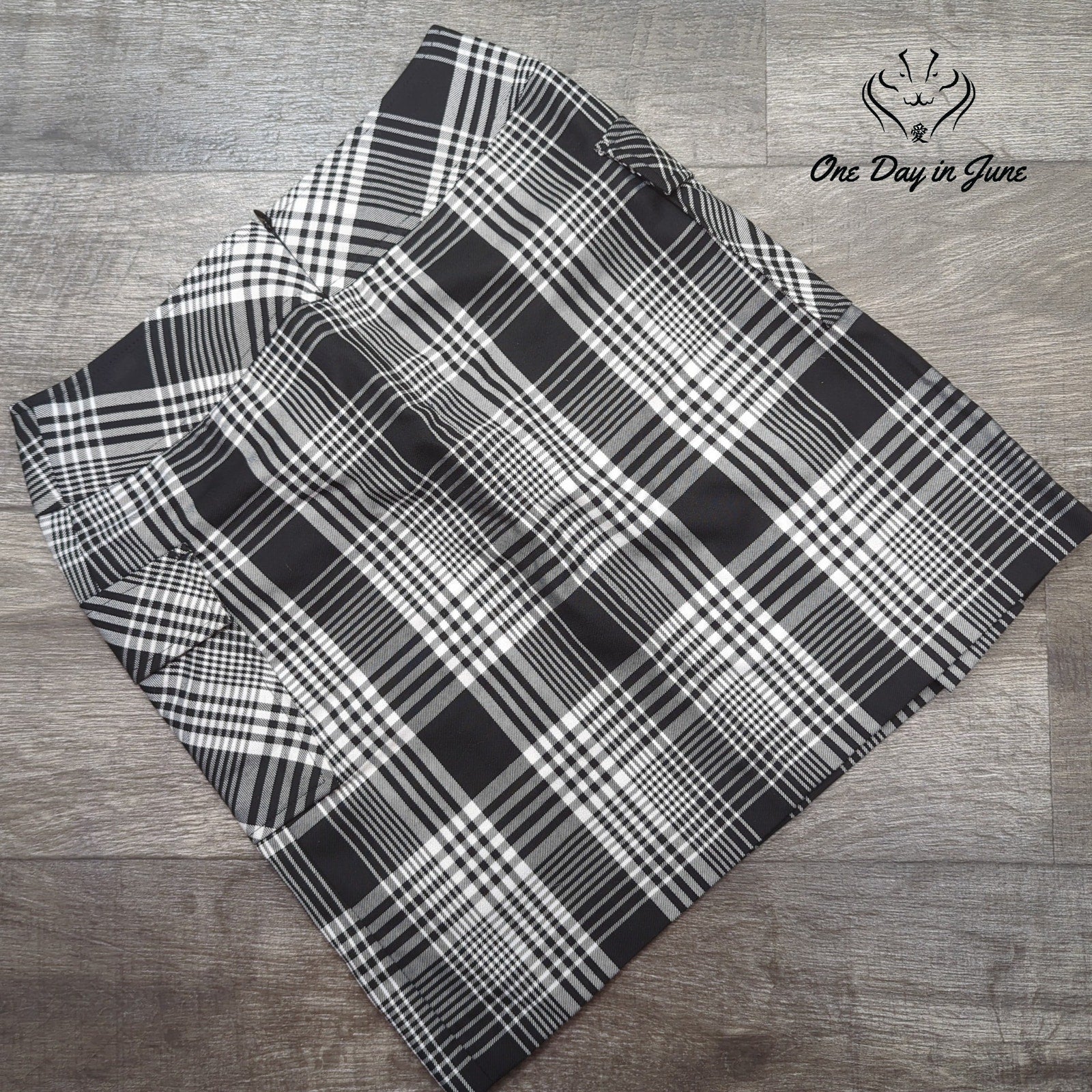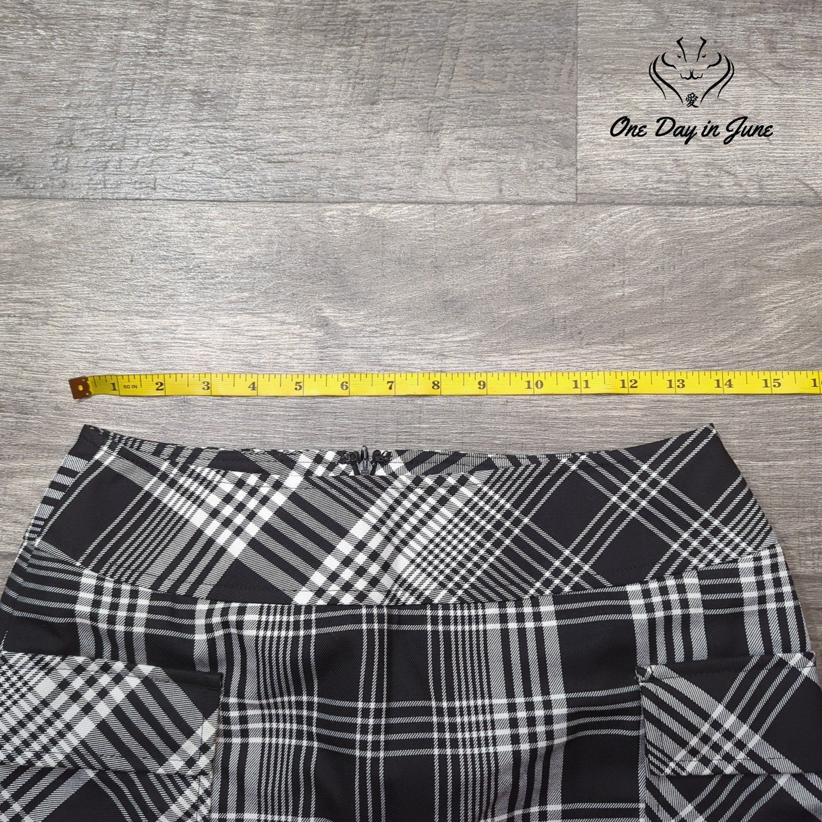 The savage beauty of this black and white Liz Claiborne mini skirt comes screaming through the darkness like a desert bat on a mission, its pristine condition mocking the very concept of wear and tear. A masterwork of polyester and viscose weaving its dark magic into a pattern that would make the ghost of Coco Chanel rise from her grave and demand a fitting, this petite warrior princess of a garment stands ready to transform any mundane wardrobe into a twisted carnival of high fashion.