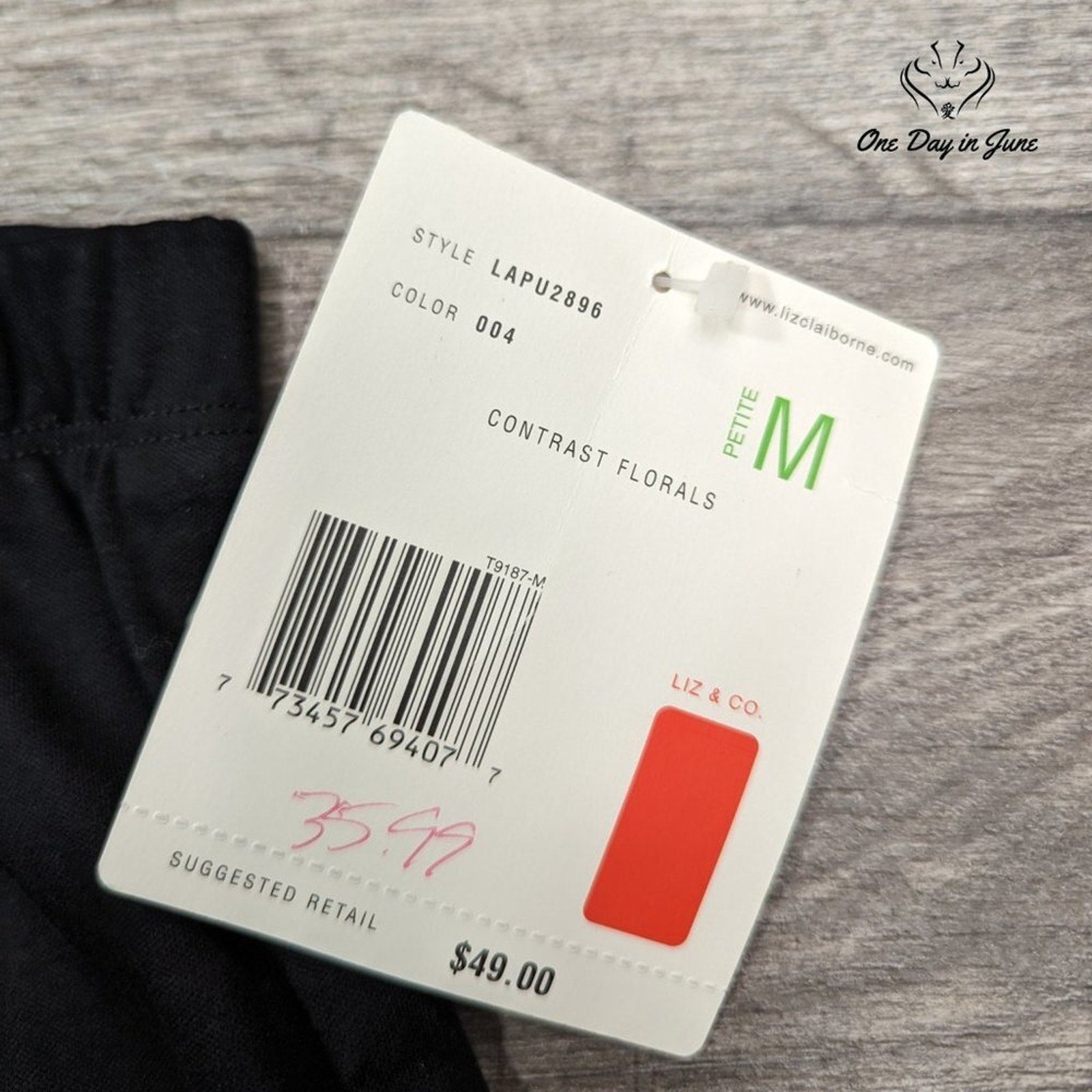 A most elegant pull-on skirt from Liz Claiborne, fashioned in the finest black cotton for the discerning lady who values both comfort and style. The convenient pull-on design offers effortless sophistication, whether attending a morning call or taking a turn about the garden. New with tags and in impeccable condition, this petite garment shall prove a most agreeable addition to any lady's wardrobe.