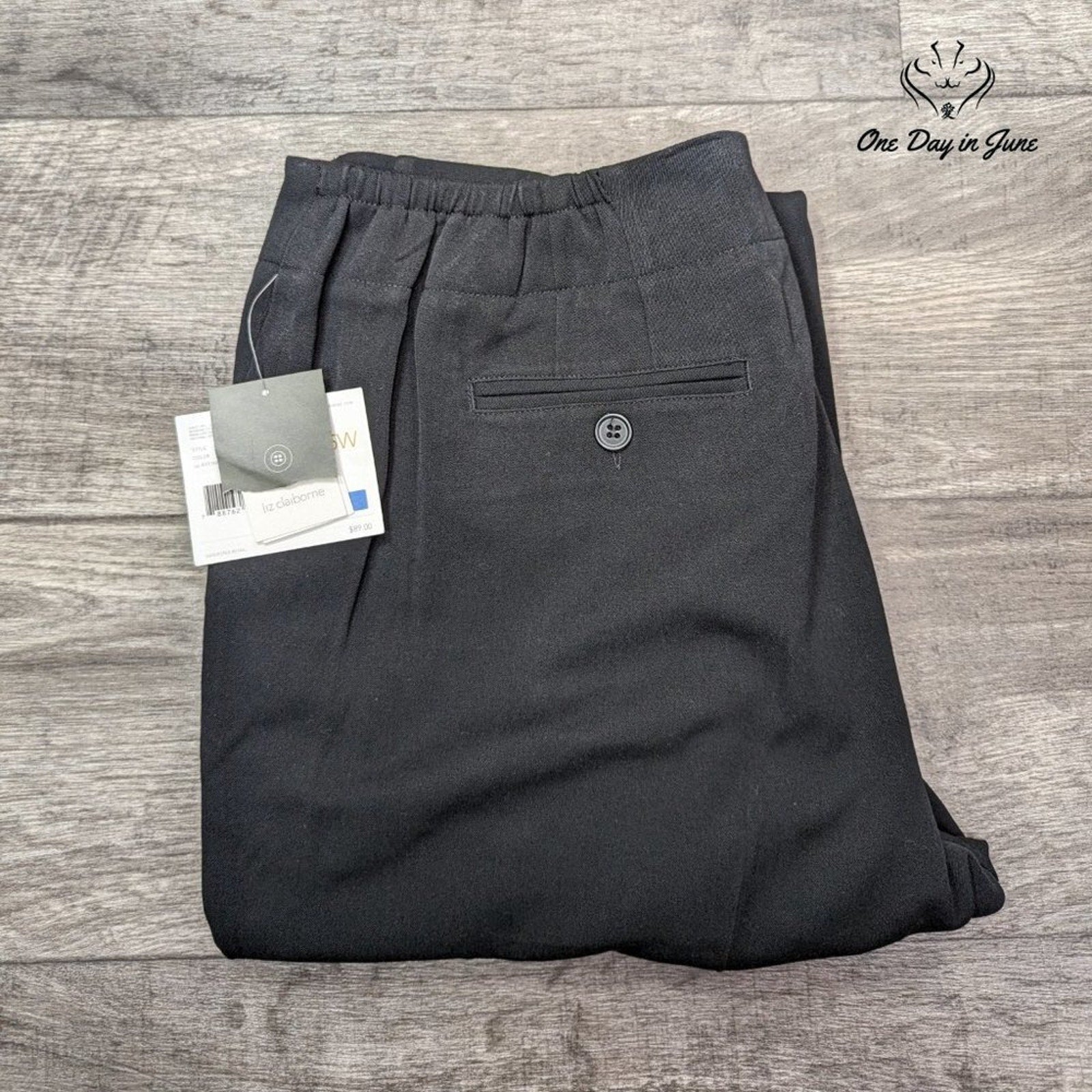 Presenting Liz Claiborne's splendid Sloane Dress Pants, crafted in the noblest blend of polyester, rayon, and spandex. These trousers, hued in the timelessly elegant shade of black, are new with tags, and perfectly poised to augment any woman's wardrobe with a dash of refined sophistication.