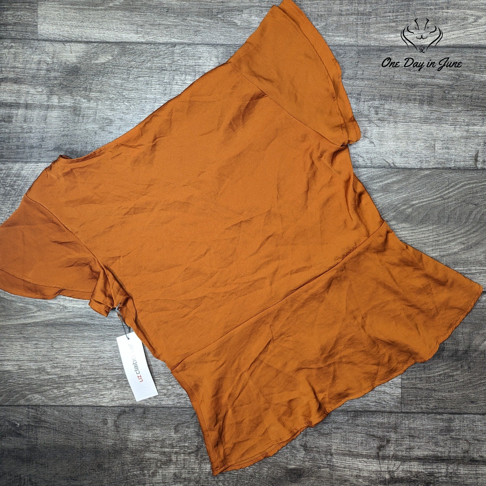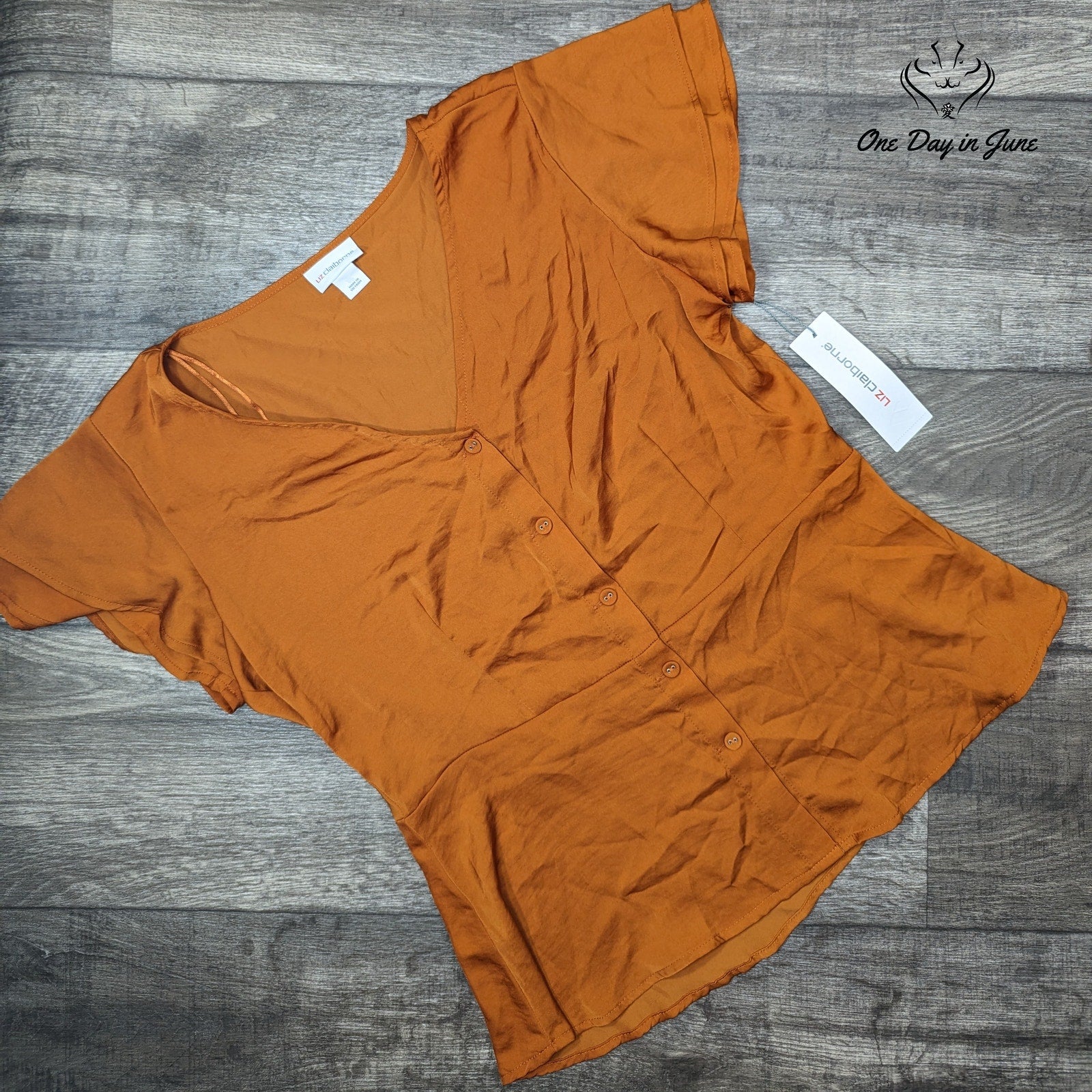 Step into style with this brand new Liz Claiborne short sleeve button down top in a striking auburn color. Crafted from high-quality polyester, this top combines comfort and fashion, perfect for any casual or professional setting.