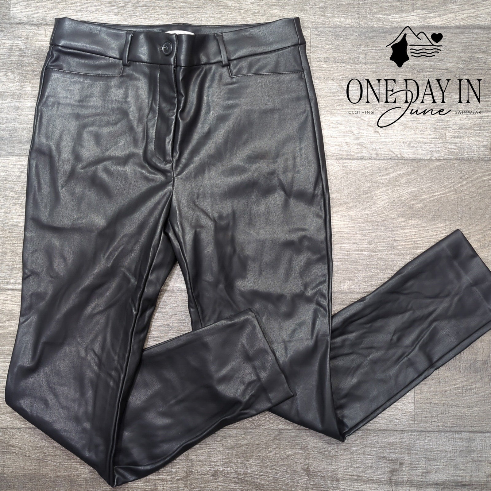 These sleek and chic black pants are quite the treat, with faux leather shine that can't be beat! Perfect for days when you want to look neat, these skinny style bottoms will make your outfit complete!