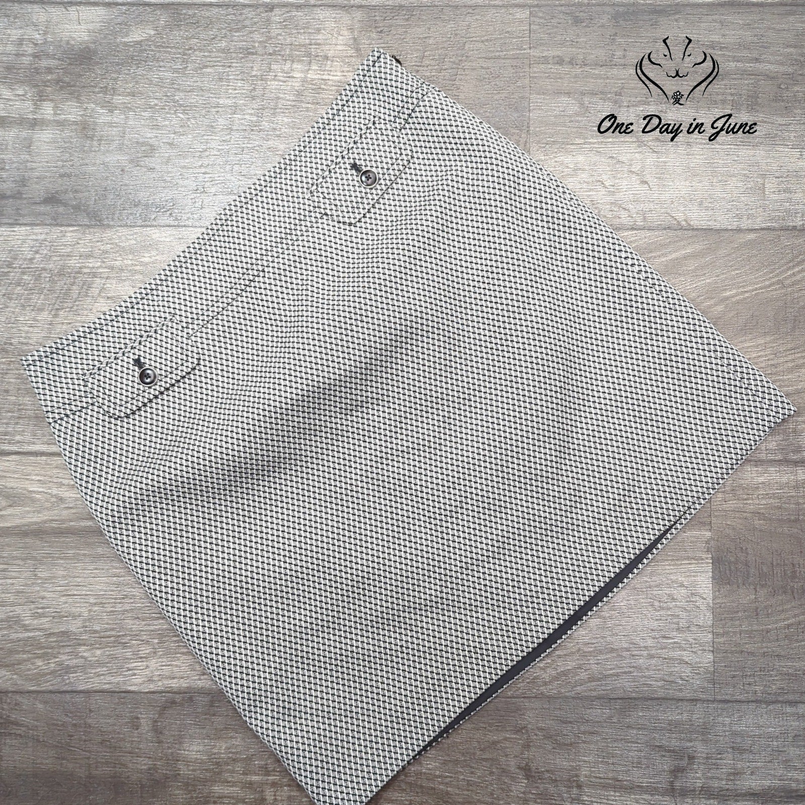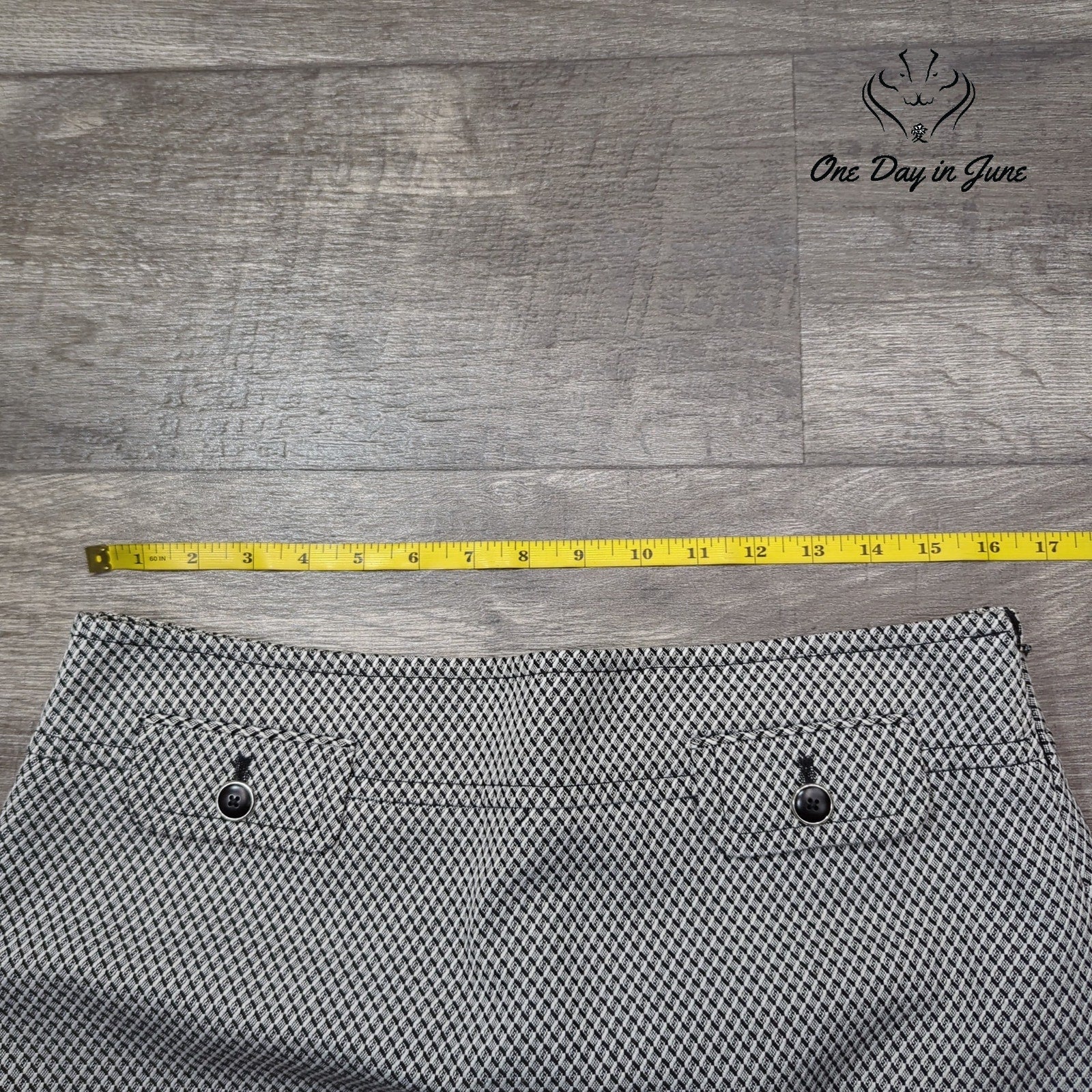 A swirling vortex of black and white, this Loft mini skirt is a kaleidoscope of madness wrapped around your hips. Like a fever dream in fabric form, it clings to reality with its polyester and rayon blend, defying the laws of fashion physics while maintaining an air of respectability - a true chameleon in the jungle of corporate America.