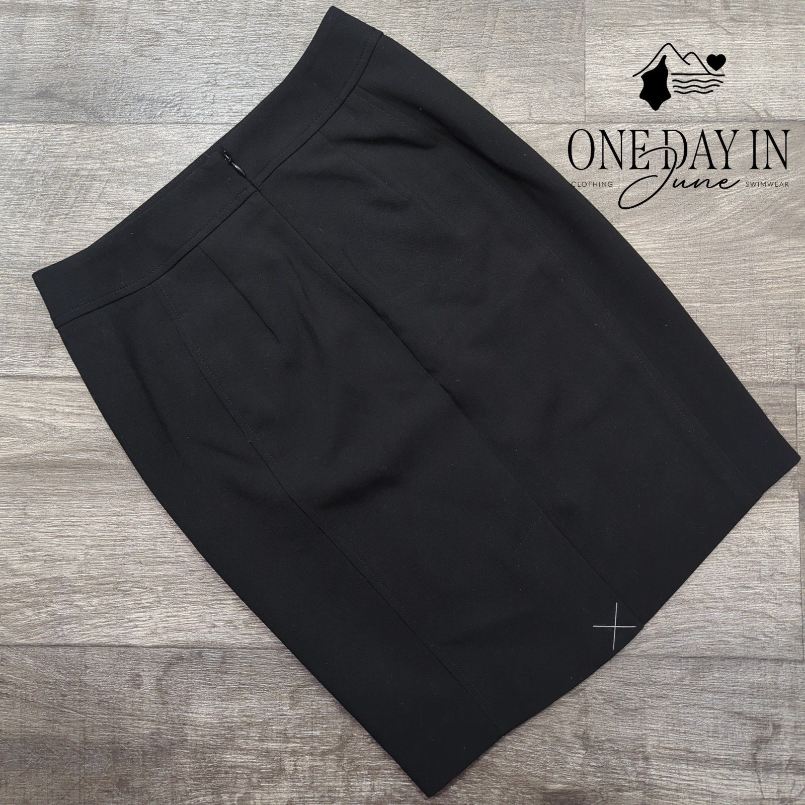 This exquisite Loft Petite pencil skirt embodies timeless sophistication with its sleek black silhouette that whispers of Manhattan afternoons and boardroom triumphs. Crafted from a luxurious blend of polyester, rayon, and spandex, it promises both comfort and that coveted figure-hugging elegance. A pristine piece that arrives with tags intact, ready to become the foundation of your most polished ensembles.