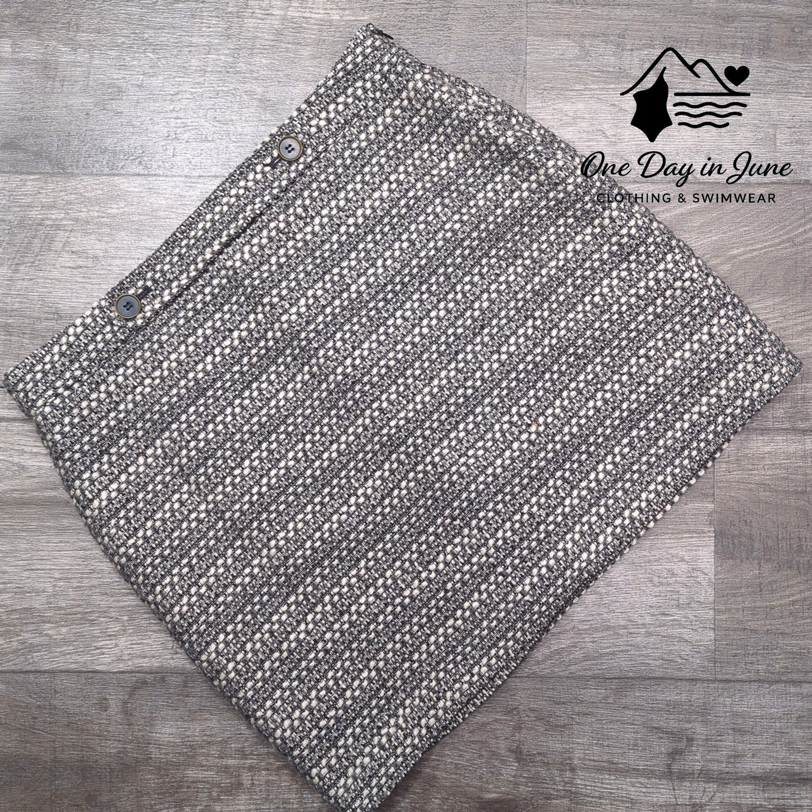 This exquisite wool blend mini skirt, brought to you by Loft, presents a most elegant arrangement of black and white that would surely delight any discerning lady of fashion. The fine construction, complete with a thoughtful polyester lining, promises both comfort and warmth, while its pristine condition suggests it has scarcely been worn during promenades through town or evening gatherings at the assembly rooms.