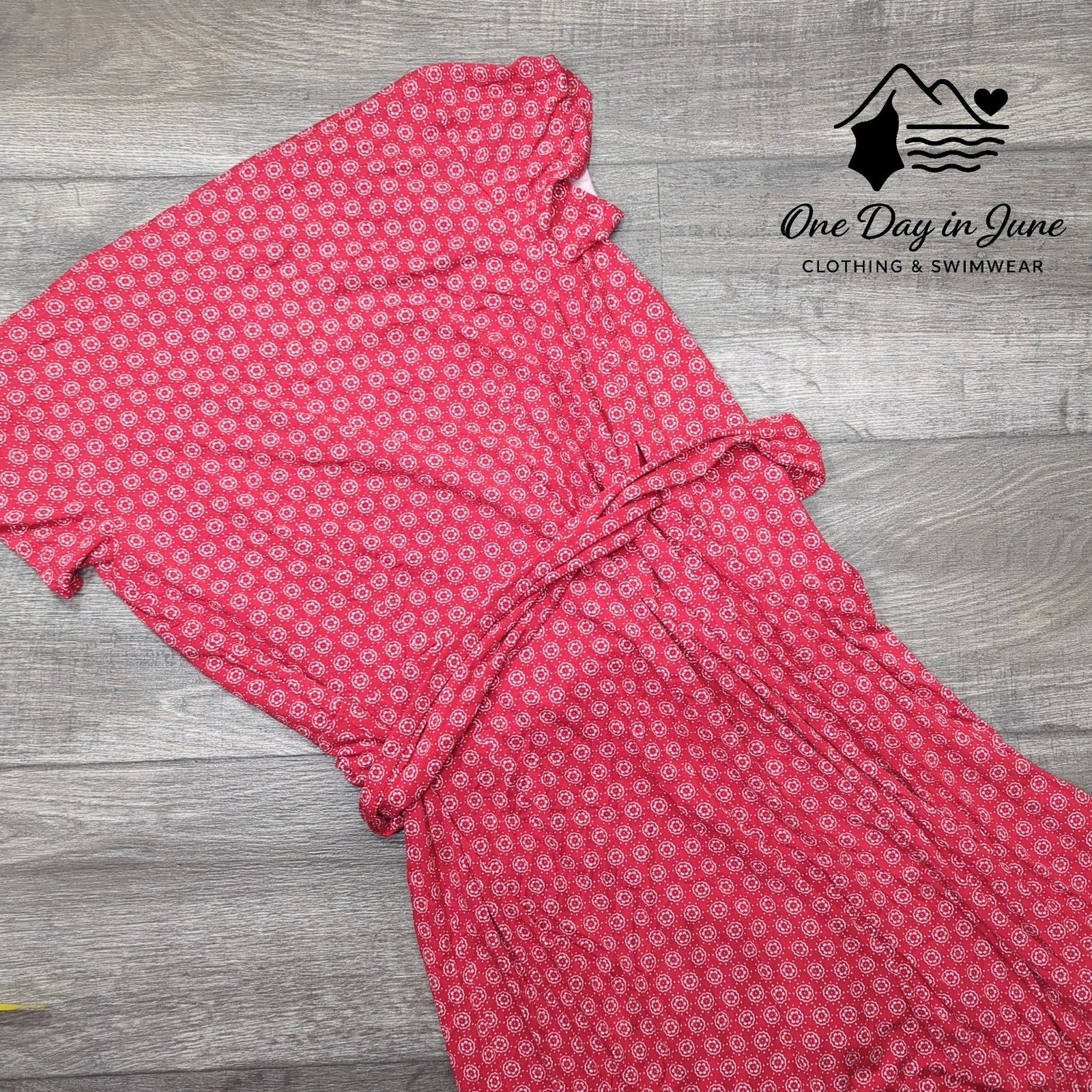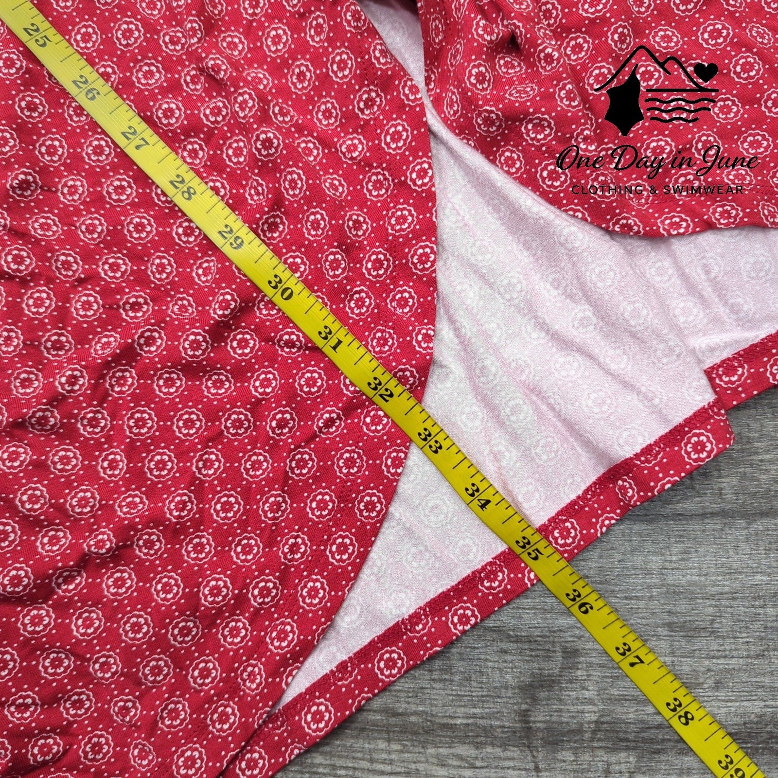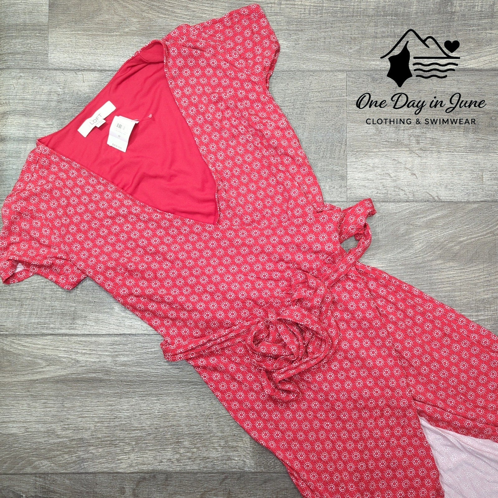 Radiant as the crimson dawn, this Loft wrap mini dress captures the fleeting beauty of summer's embrace. Its short sleeves flutter like whispers of possibility, while the luxurious blend of rayon and spandex drapes with elegant precision against the figure, promising both comfort and that rare, effortless grace.
