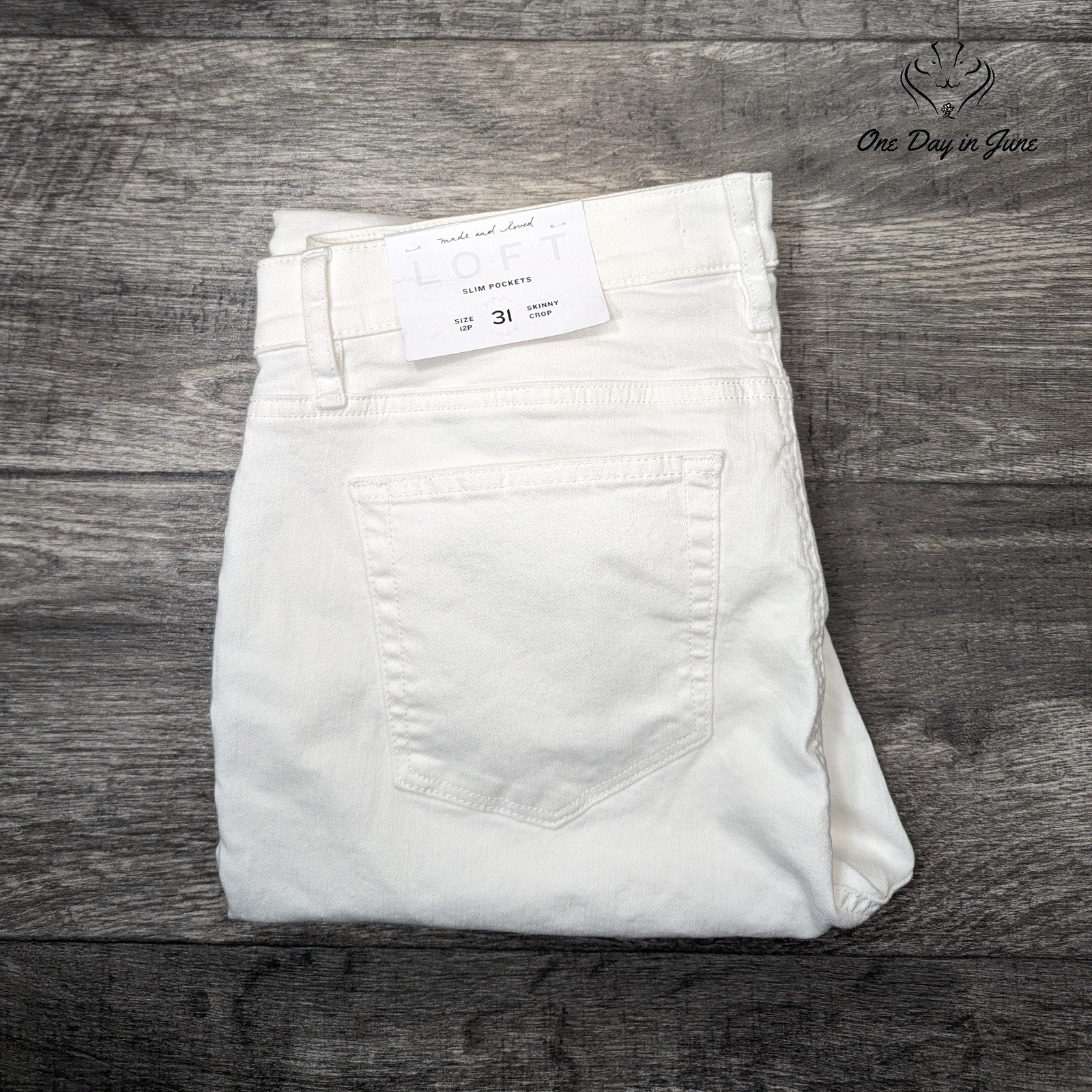 Crafted by Loft, these Slim Pocket Skinny Crop Jeans boast an immaculate white hue. New and untouched, they are woven with a blend of cotton and spandex, promising comfort with every stride. A testament to simplicity and stylish practicality.