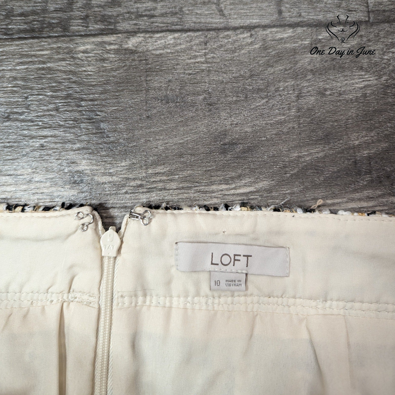 Presenting this fetching Loft Textured Lined Mini Skirt, in a lively multi-color pattern that's sure to attract admiration. Constructed from polyester, evoking a modern sensibility, it's in a condition just shy of brand new. A delightful addition to any lady's wardrobe where comfort meets elegance.
