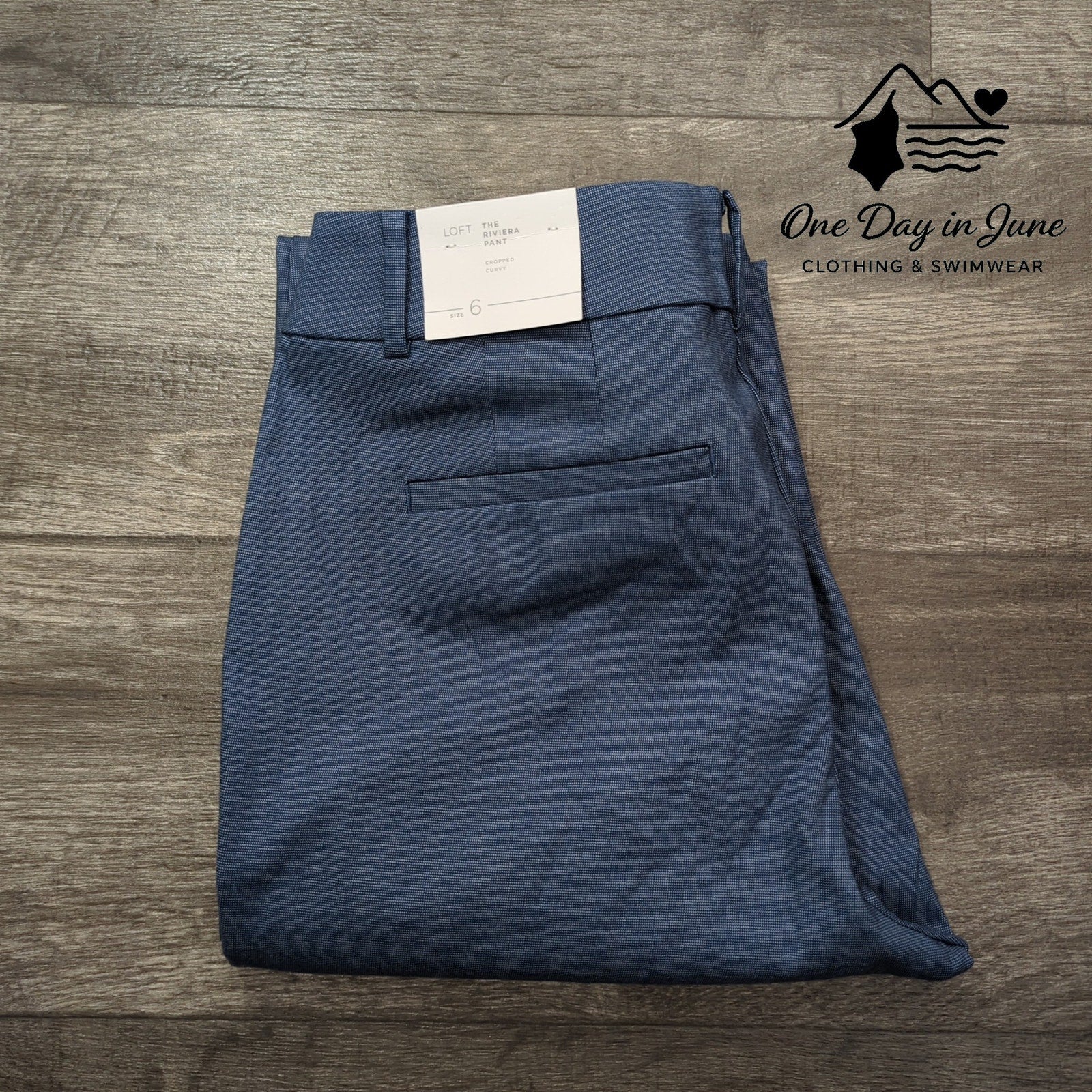 Blue as the summer sea at dusk, these Riviera Cropped Curvy Pants from Loft embody casual elegance with their pristine, never-worn condition. The cotton-spandex blend promises a day of comfort that transitions effortlessly into evening cocktails, clinging to curves with the same tender persistence as memories of youth.