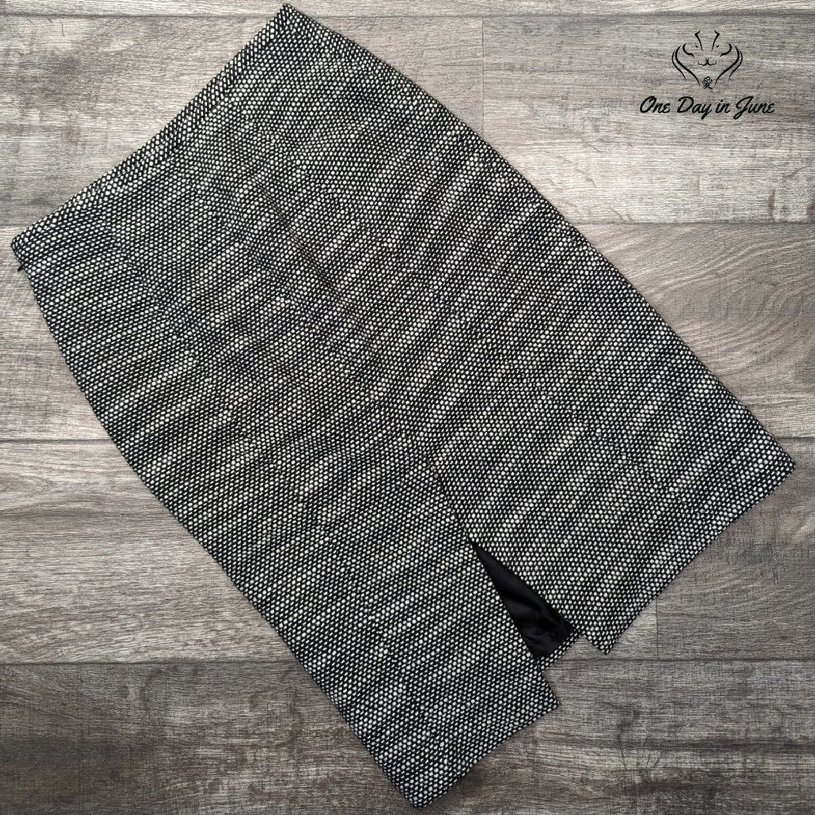 This Loft black and white midi skirt, crafted from a blend of acrylic, wool, polyester, and cotton, is a testament to timeless elegance. Worn lightly, it remains like new, ready to grace your wardrobe with its quiet sophistication.