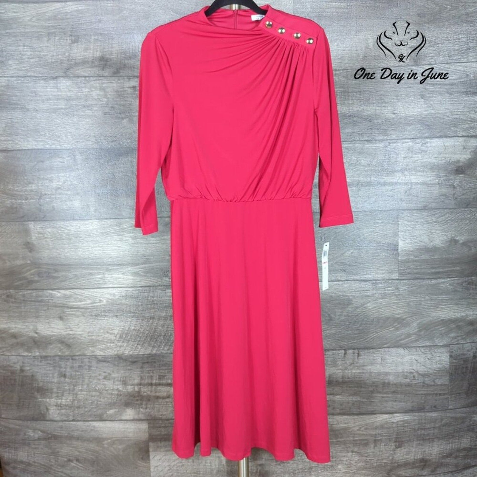 Brace yourself for a ride through the surreal streets in this London Style masterpiece, redder than a bull's fury. This long sleeve midi dress, fresh as a newborn colt with tags intact, dances to the erratic symphony of polyester and spandex. An ode to the audacious fashionista ready to transcend the mundane and embrace the extraordinary.