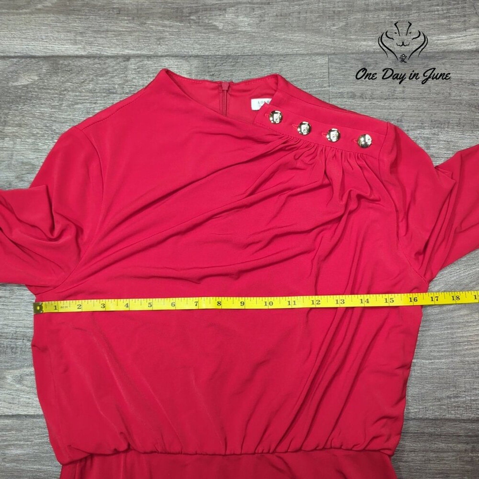Step into a world of elegance with this exquisite red, long-sleeved midi dress from London Style. Crafted to perfection, it promises both comfort and sophistication for any refined occasion. New with tags still intact, it awaits its debut in your illustrious wardrobe.