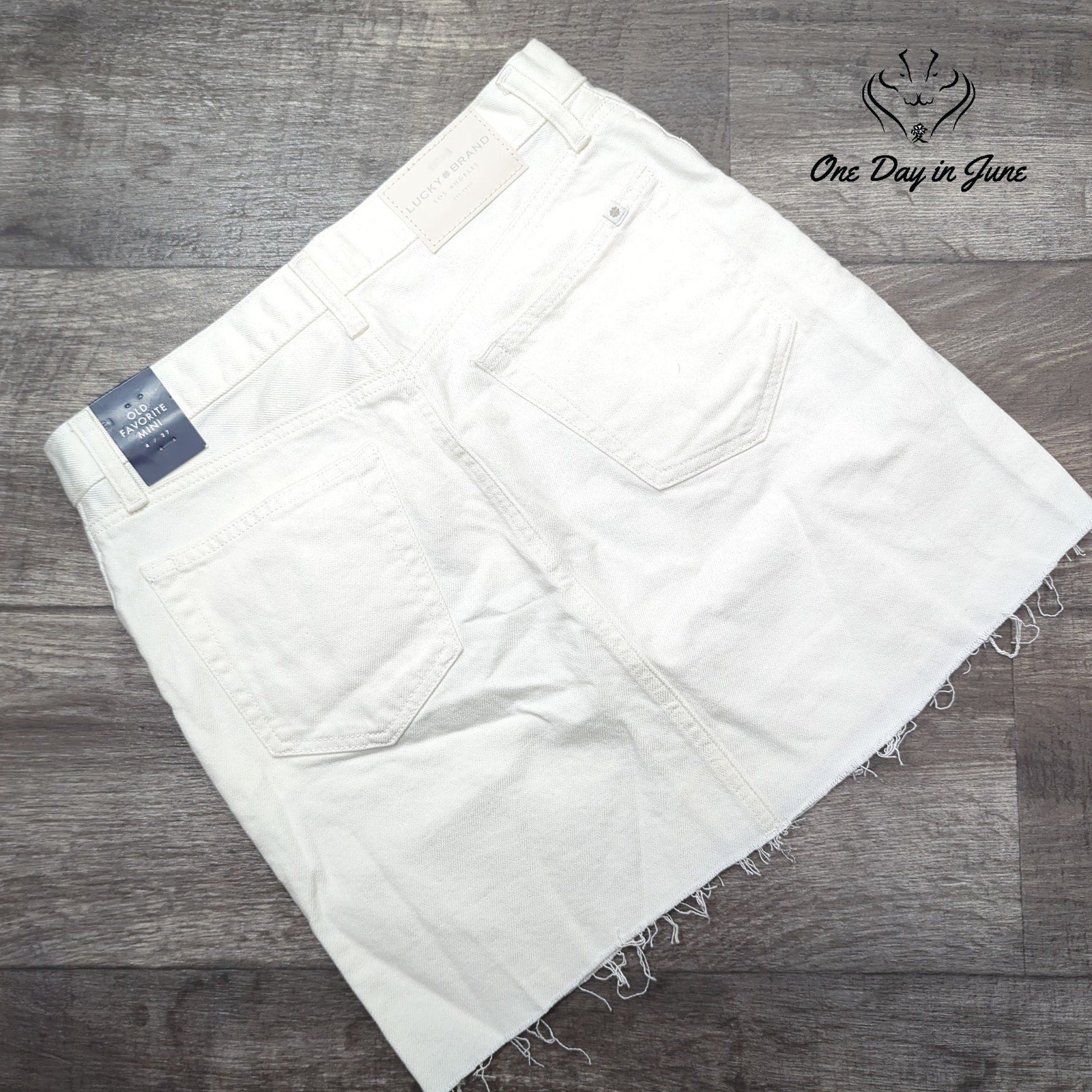 A delightful confection of snowy white, this charming mini skirt from Lucky Brand is sure to become an old favorite in any lady's wardrobe. Crafted with the utmost care from a blend of soft cotton and a touch of elastane for comfort, it promises to be a most becoming addition to one's summer attire.
