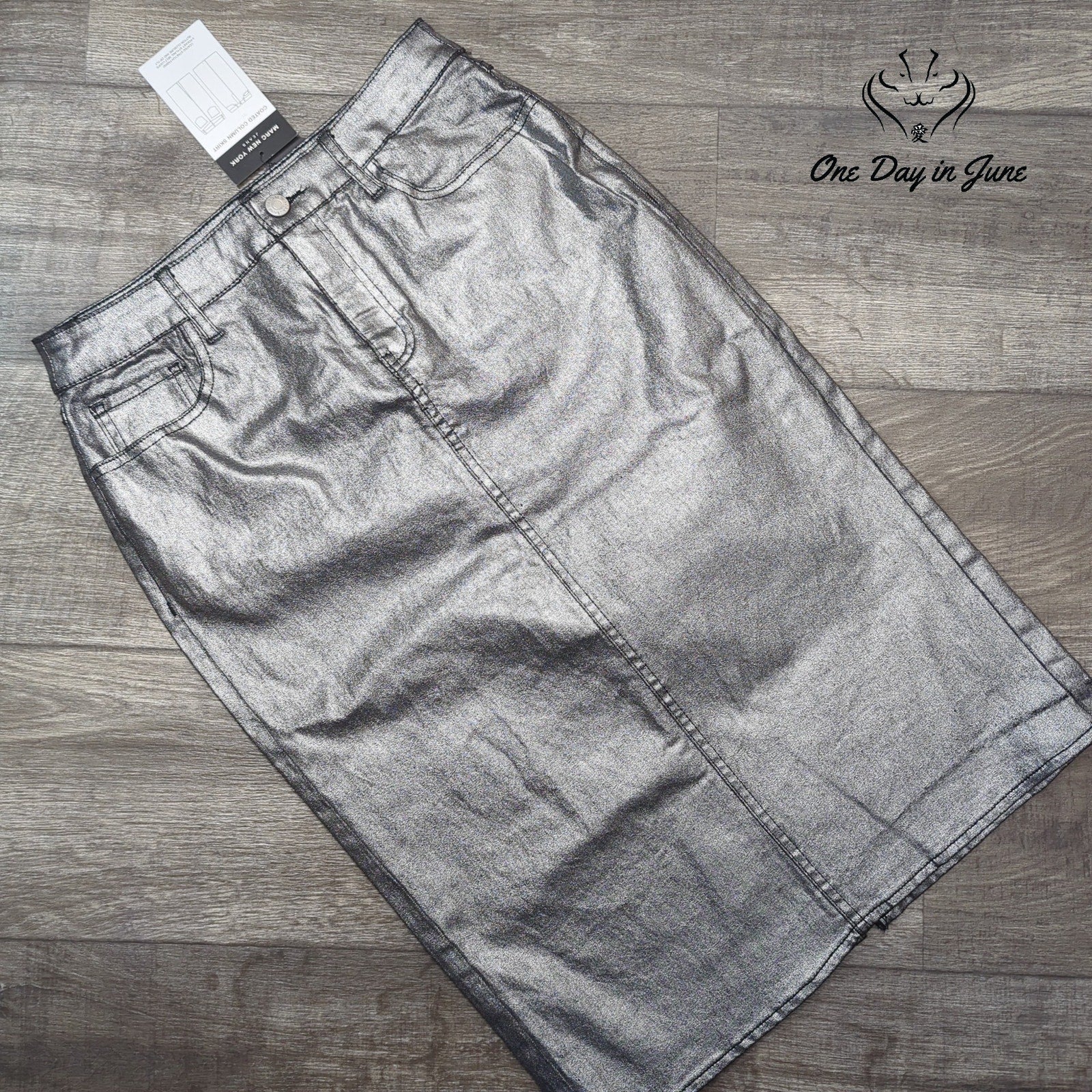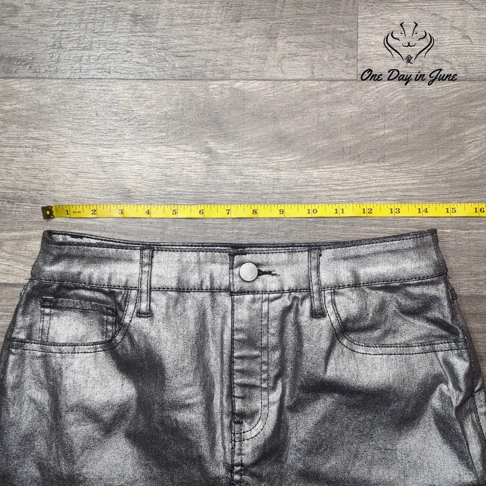 Tags: #MarcNewYorkFashion #SilverMiniSkirt #WomensCoatedDenim