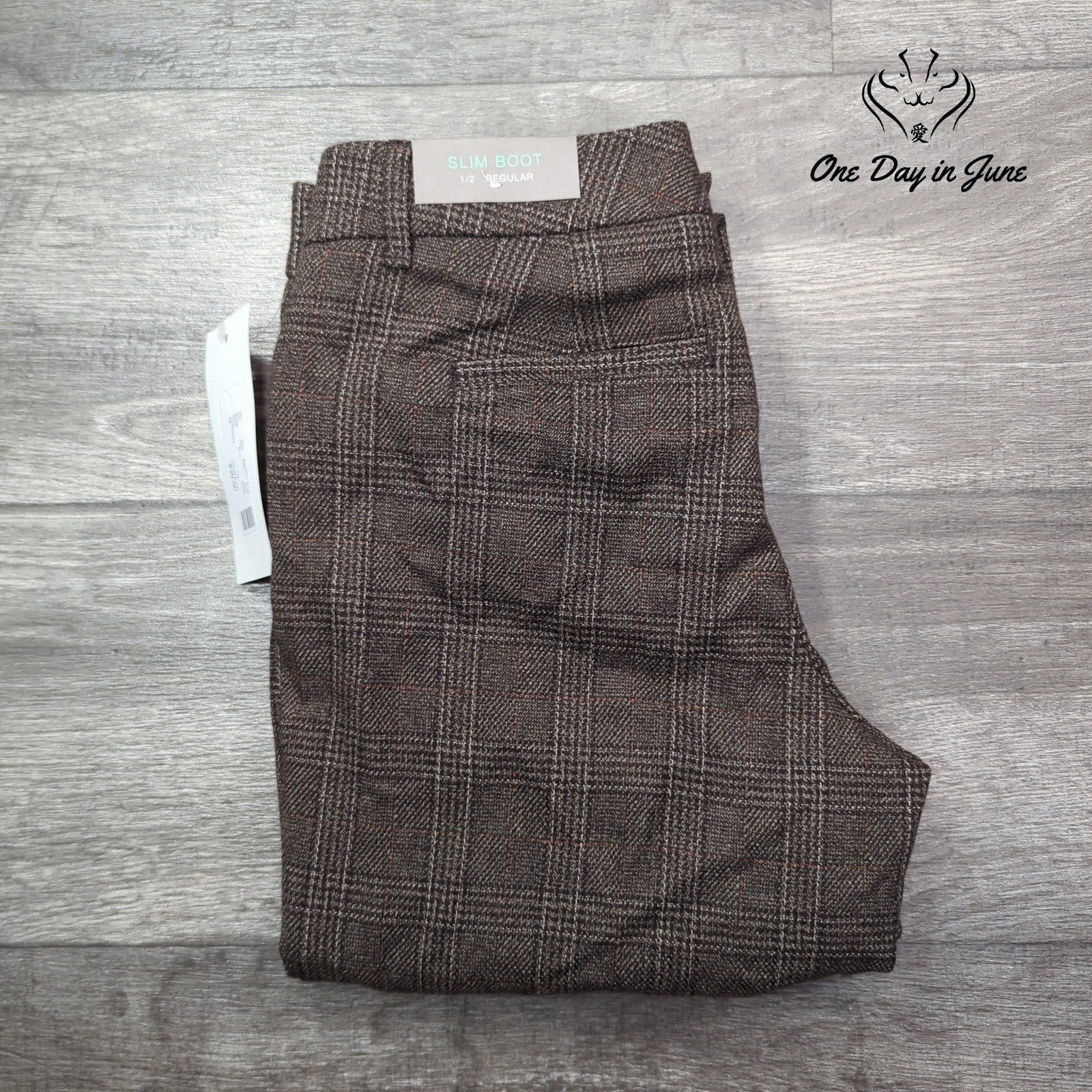 A most becoming pair of slim boot cut trousers in a delightful shade of brown, crafted from a splendid blend of polyester, rayon, and spandex for both comfort and elegance. These Maurices pants, still adorned with their original tags, promise to cut a fine figure while maintaining that perfect balance between style and practicality.