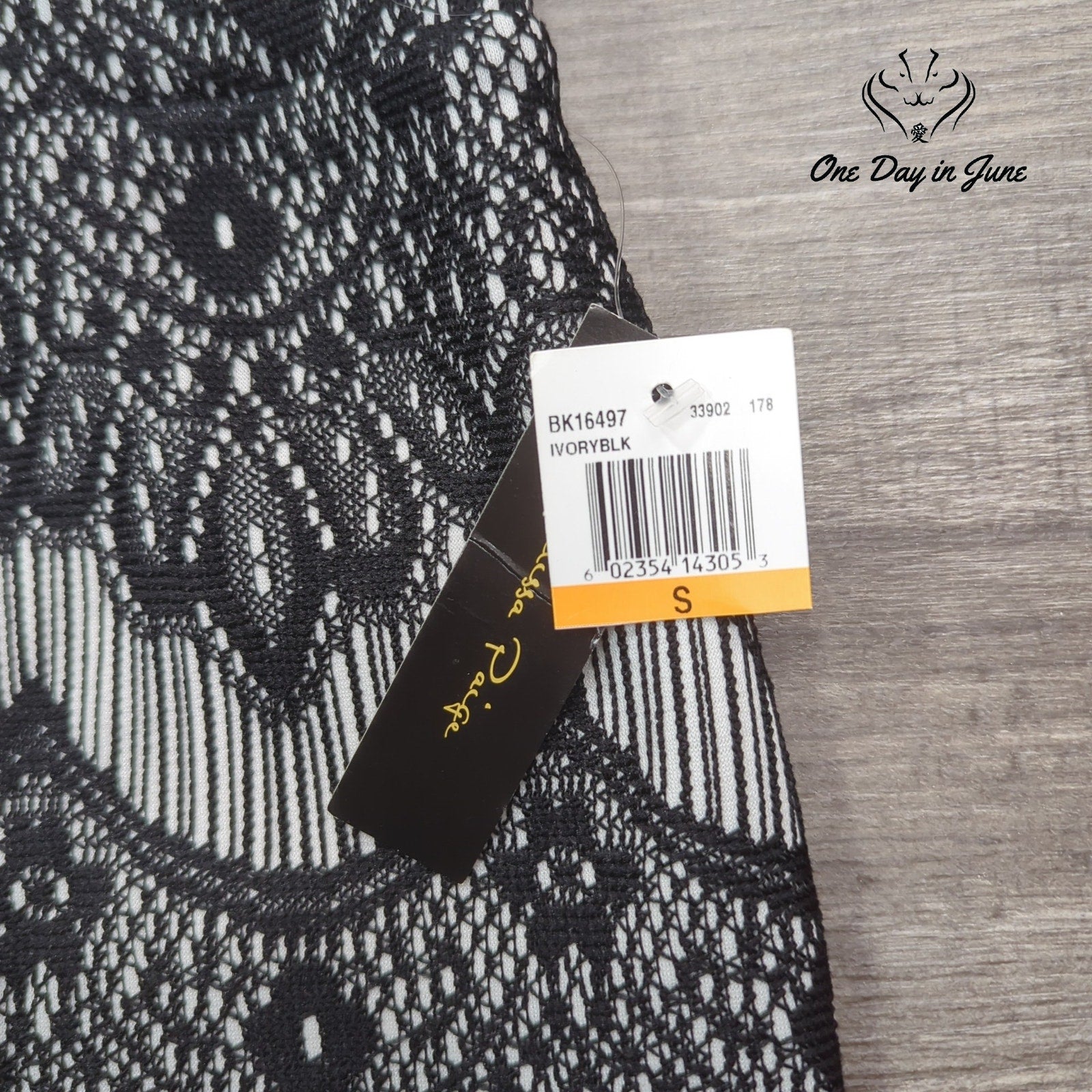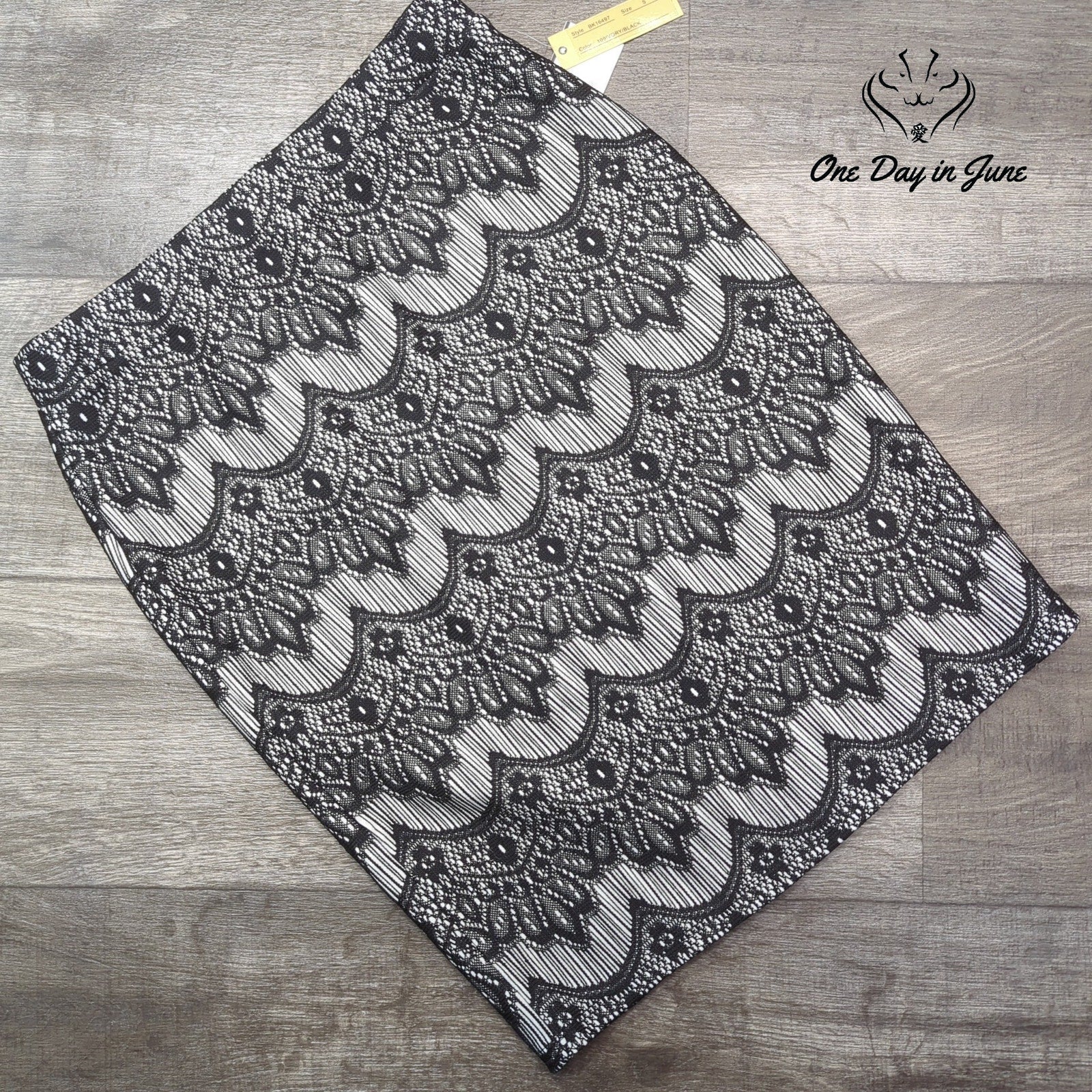 This elegant black pencil skirt from Melissa Paige cuts a most becoming figure, with its sleek silhouette and modern sensibilities. Crafted from a delightful blend of polyester and spandex, it offers both comfort and sophistication, making it an essential addition to any well-appointed wardrobe.