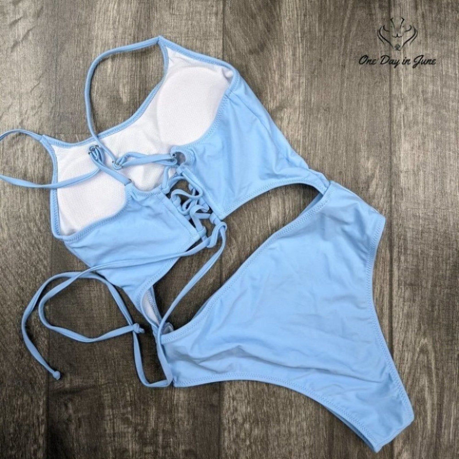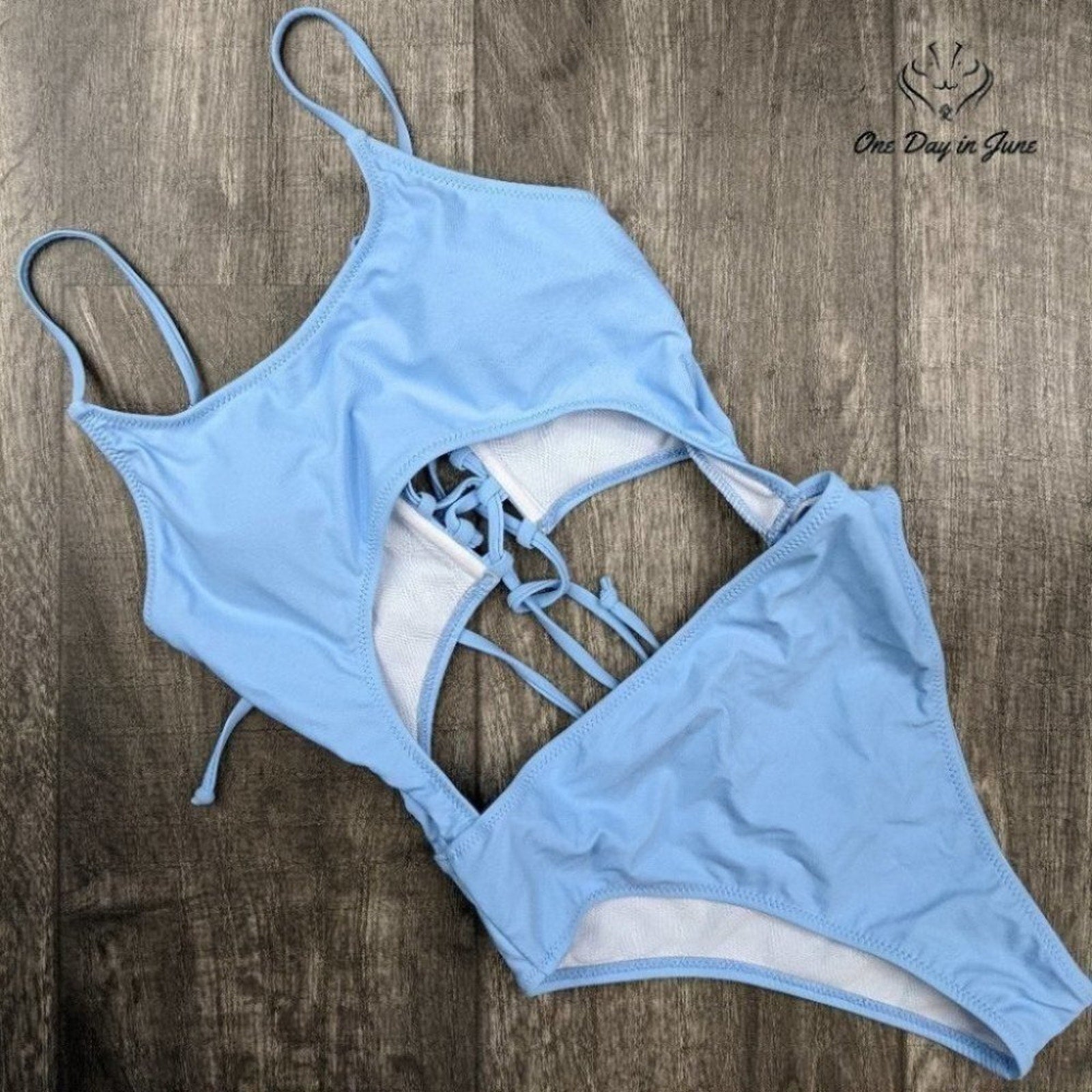 A flirty and fun suit in ocean blue, with a scoopy neck and a peek-a-boo! This cutout one piece brings glamour and flair, making beach days brighter with style to spare!