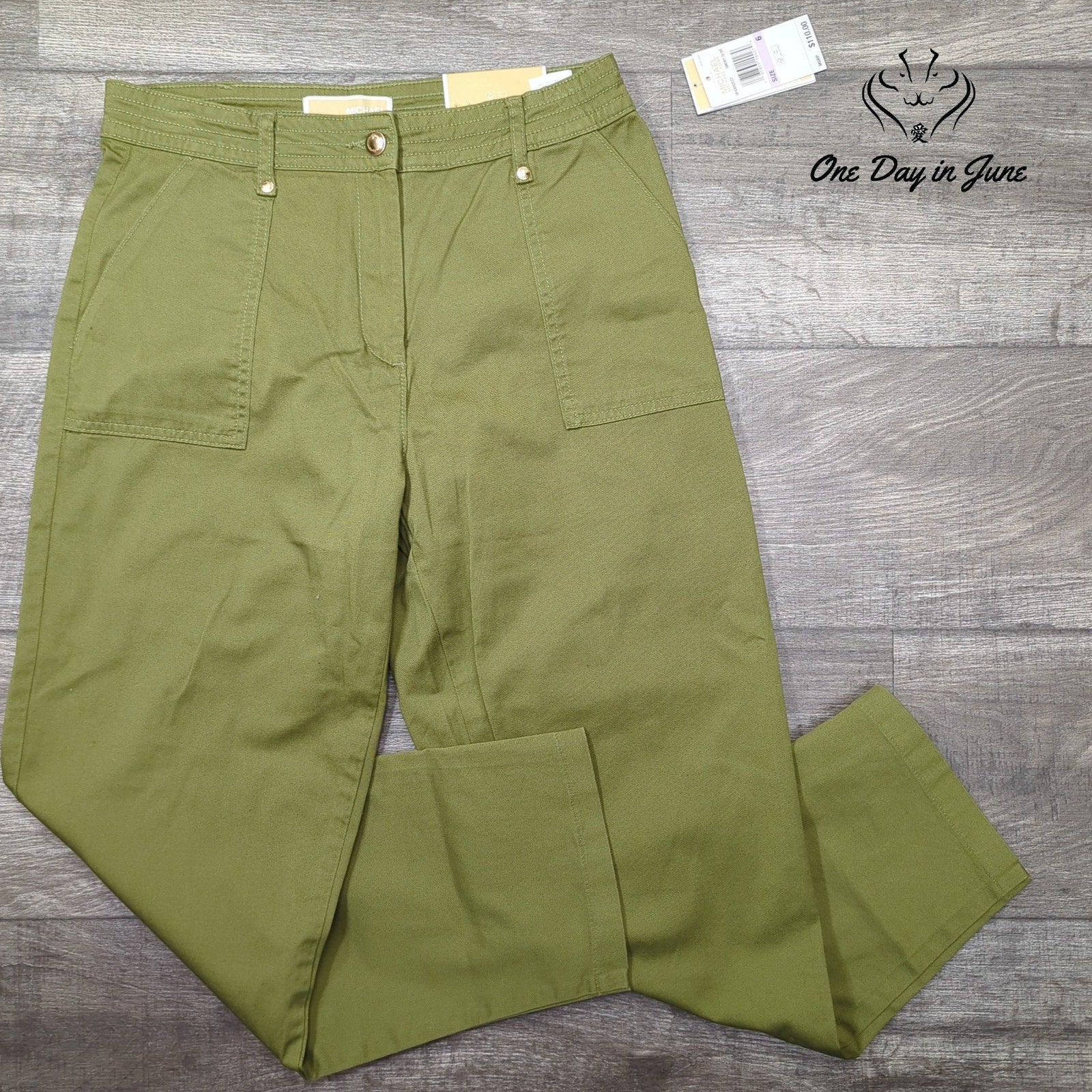 Oh, these jeans are a marvelous sight, in a shade of green that's pure delight! Straight to the ankle with a rise that's high, these Michael Kors stunners are ready to make your wardrobe fly!