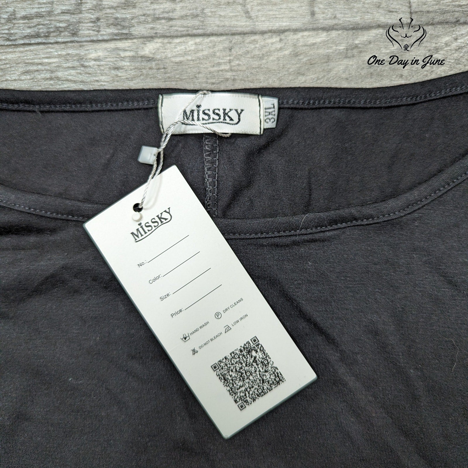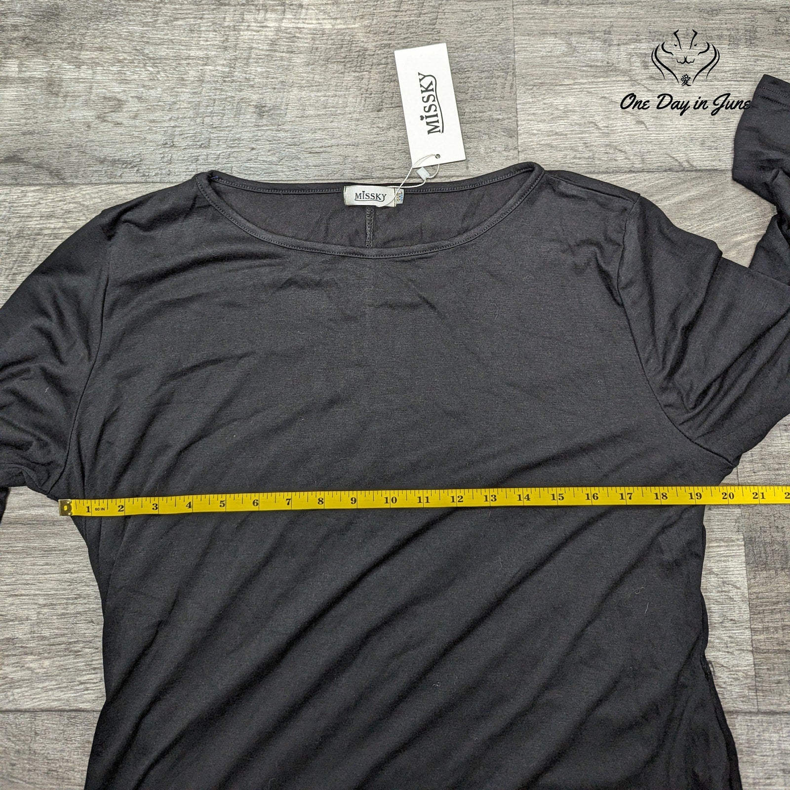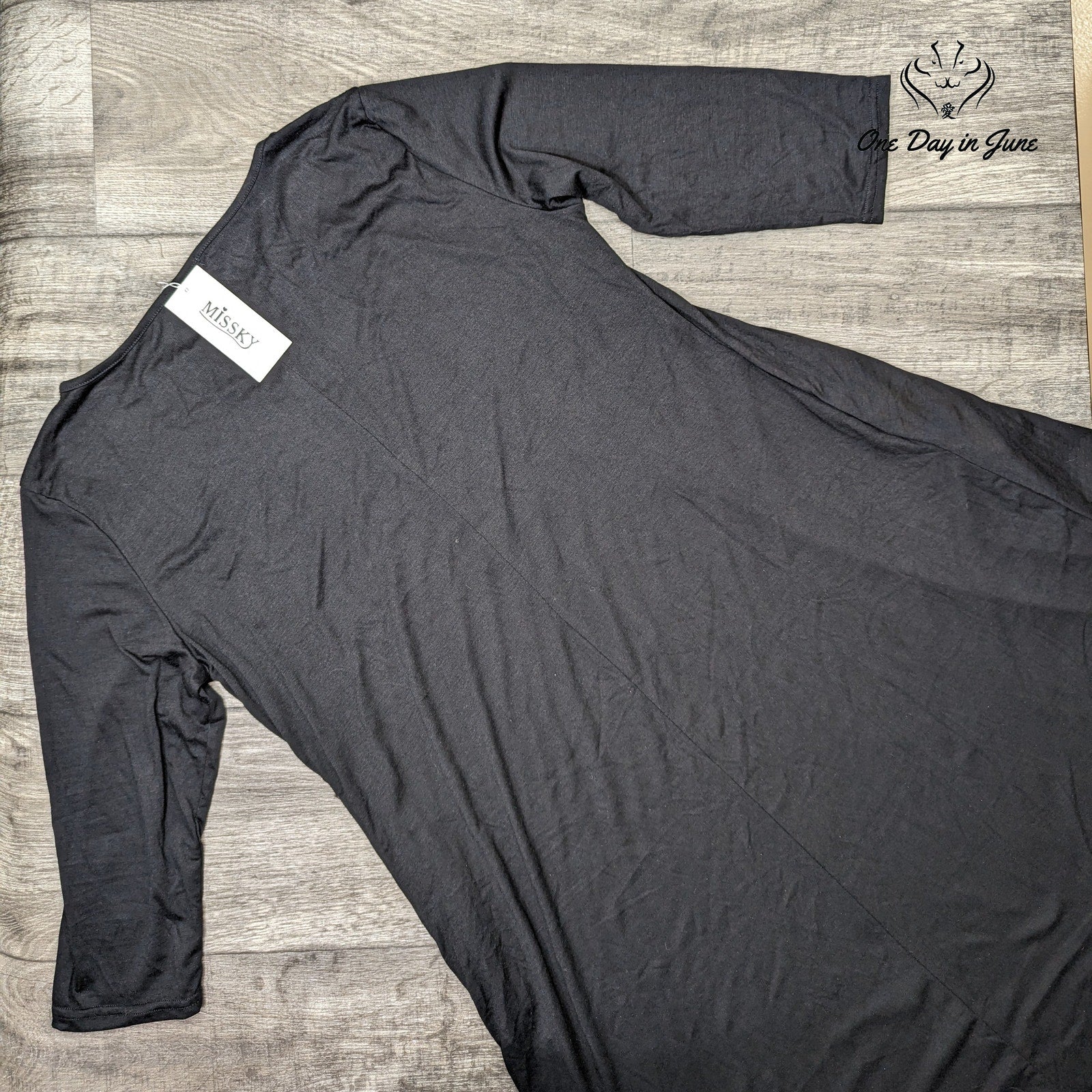 Experience the ease of comfort in this Missky swing dress, fashioned with a blend of cotton, polyester, and spandex. The black long-sleeve pullover design is new, boasting a pocket and a loose, inviting silhouette. An ode to simplicity, this dress is the embodiment of understated elegance.