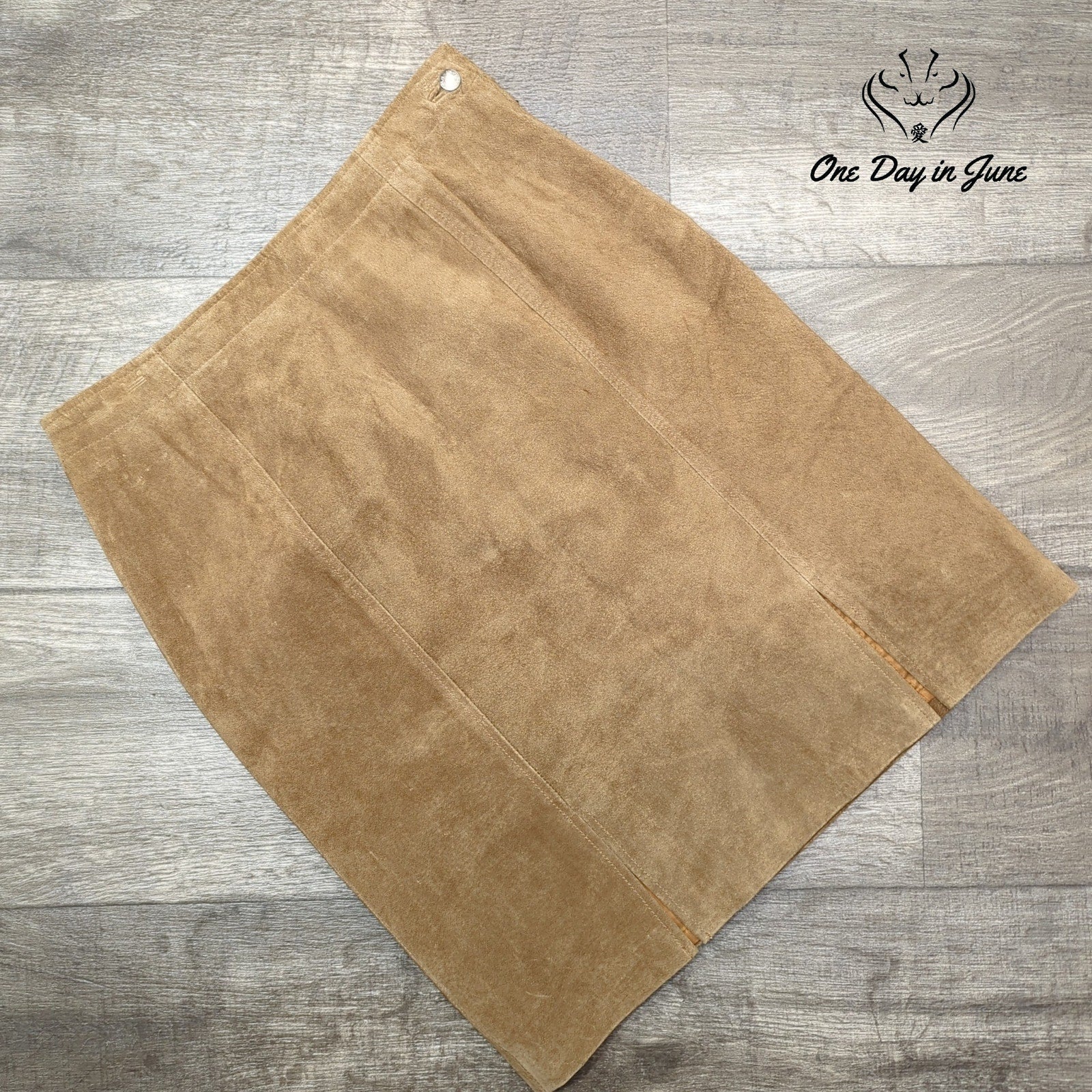 Elevate your style with this like-new, brown leather mini skirt from My Weekend Clothes. Perfect for any occasion, this piece is masterfully constructed from high-quality leather and features a comfortable polyester lining. It's a wardrobe must-have for any fashion-forward woman.