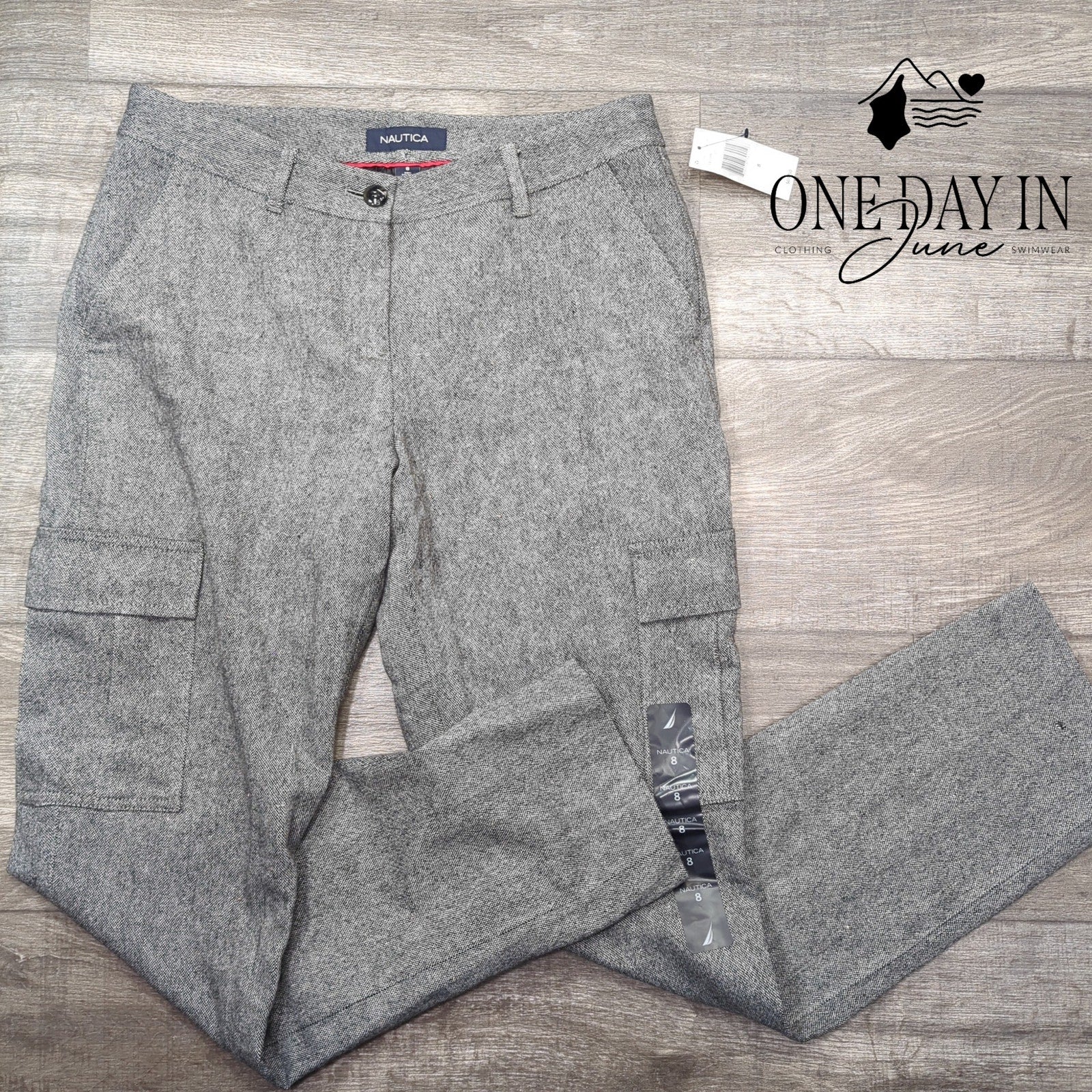 The grey wool wilderness beckons through these cargo-styled beauties from Nautica, lined with the soft embrace of polyester that whispers promises of warmth against the chaos of winter winds. These aren't just pants, they're armor for the modern woman warrior navigating the strange territories of daily existence, with pockets deep enough to hold secrets and dreams alike. The wool-acrylic blend creates a fortress of comfort that laughs in the face of ordinary fashion, while the lining ensures your legs remain blissfully unaware of the madness swirling outside.