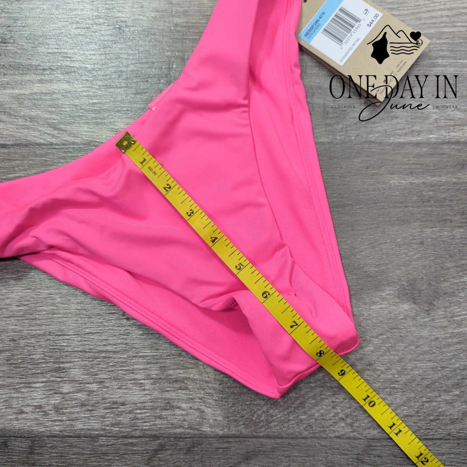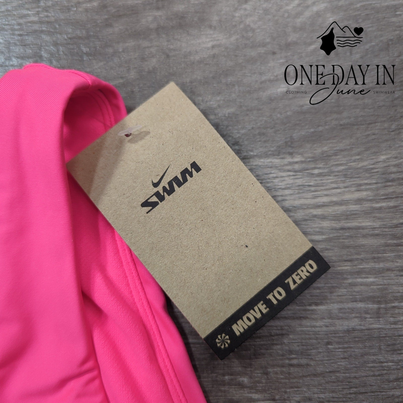 The swoosh has invaded beachwear territory and this pink number is the living proof—sleek synthetic fibers twisted together in some lab somewhere, engineered for maximum poolside confidence and chlorine resistance. New tags still attached like little paper badges of authenticity, screaming "unworn!" to anyone who needs that kind of reassurance. A triumph of athletic wear meeting summer madness, built for the woman who demands performance even when she's lounging on a towel with a cold drink in hand.