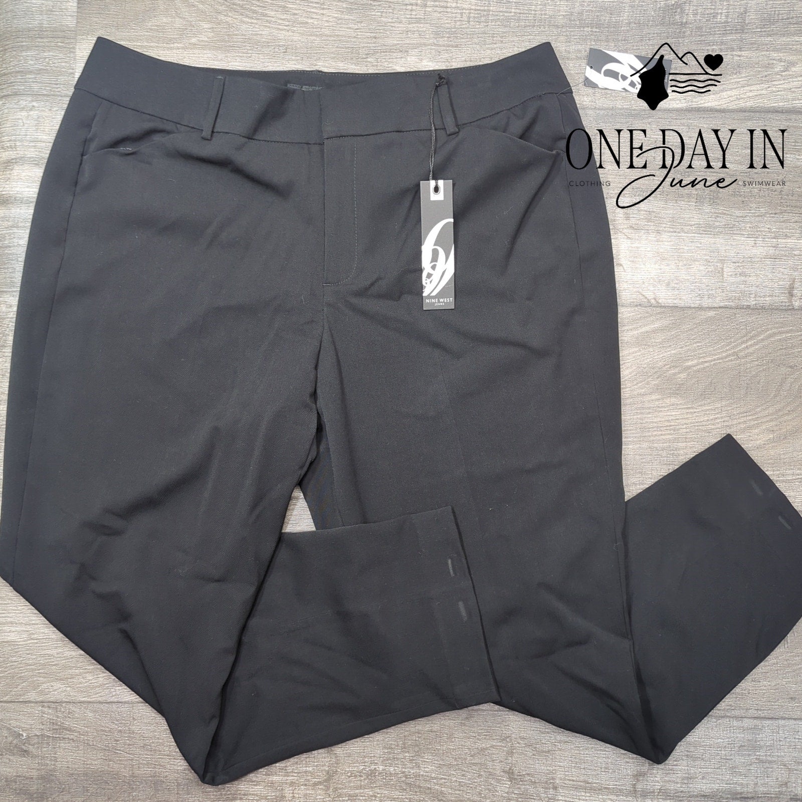 These fantastic black pants are quite a treat, with stretchy comfort that can't be beat! From Nine West they come, oh what fun, perfect for days in the office or sun!