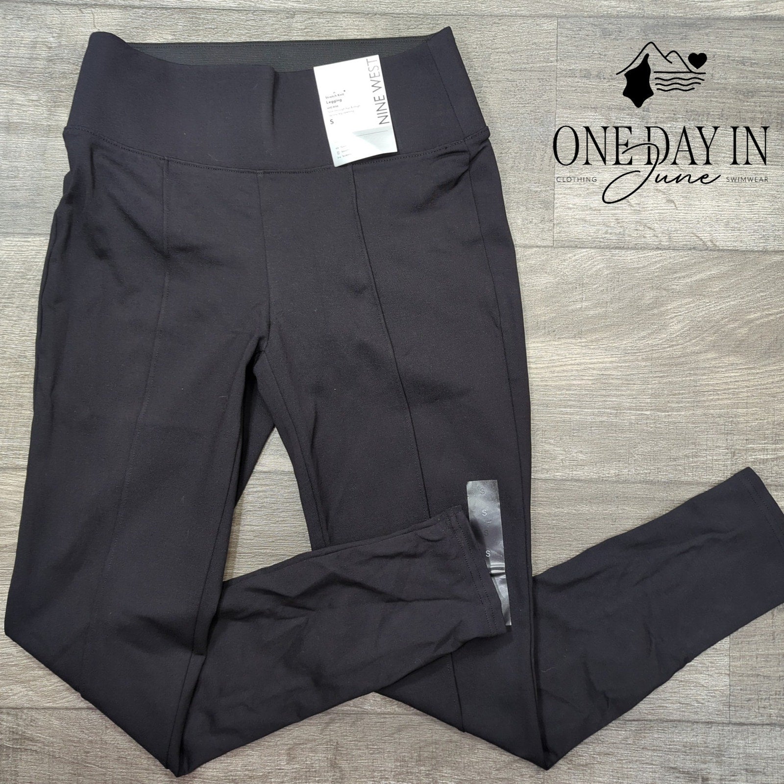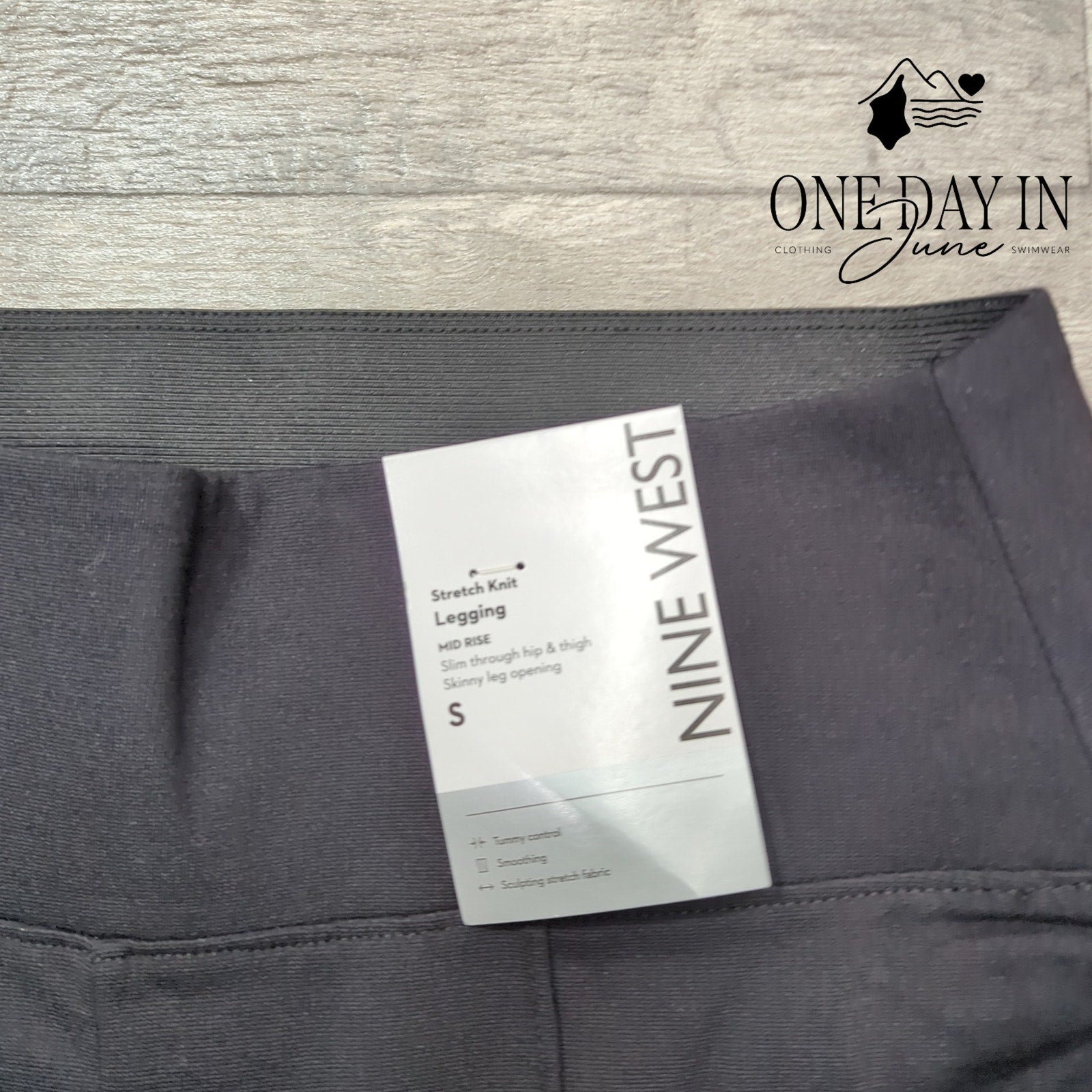 These stretchy black leggings are quite the treat, with fabric so soft and oh-so-neat! From Nine West they came with tags intact, perfect for any wardrobe pact!
