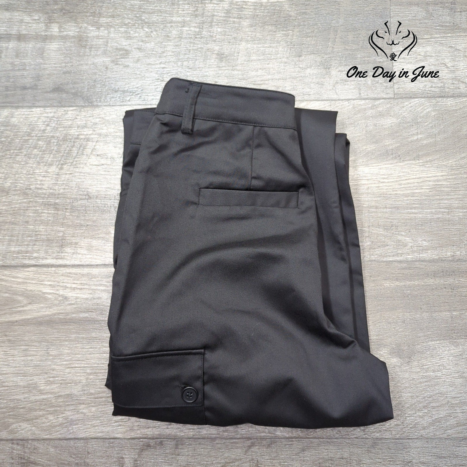 With pockets galore and a sleek black stance, they're perfect for adventures, work, or a dance.