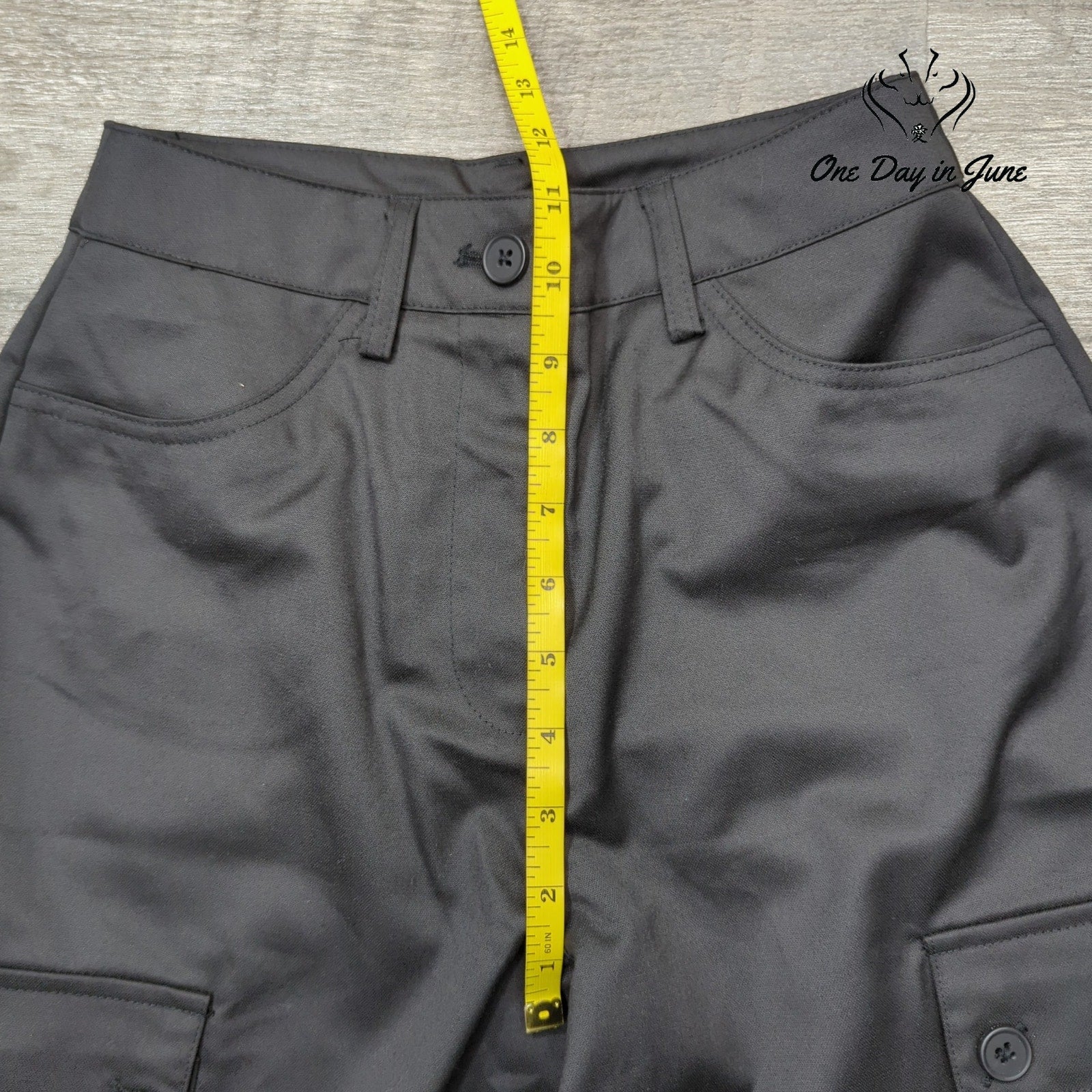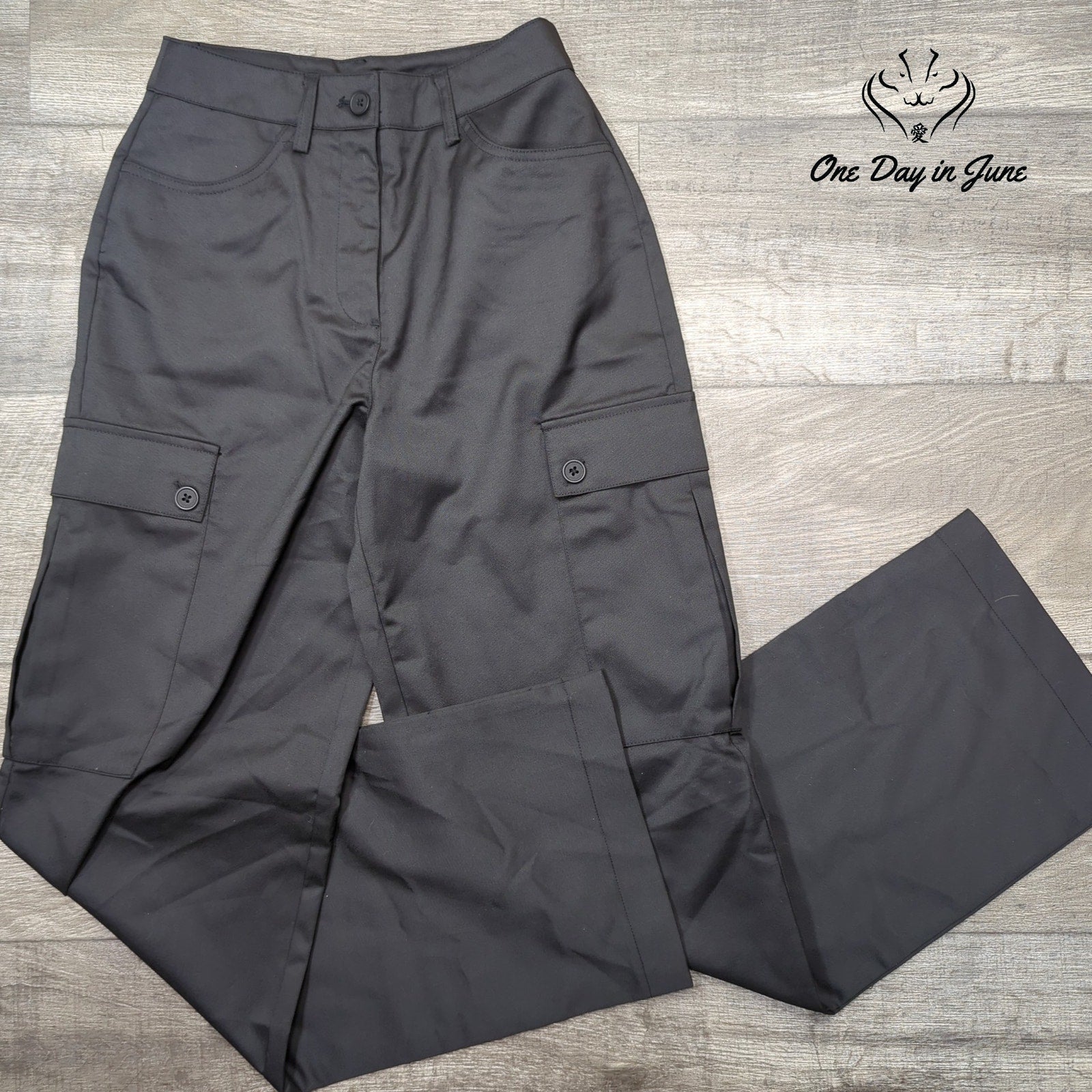Behold, dear reader, a most serviceable pair of black utility cargo trousers, fashioned by the esteemed Noisy May. These pantaloons, crafted from a becoming blend of polyester and elastane, offer both comfort and practicality for the modern lady of discerning taste. Though never adorned with tags, they remain in pristine condition, ready to accompany you on your daily adventures with utmost style and grace.