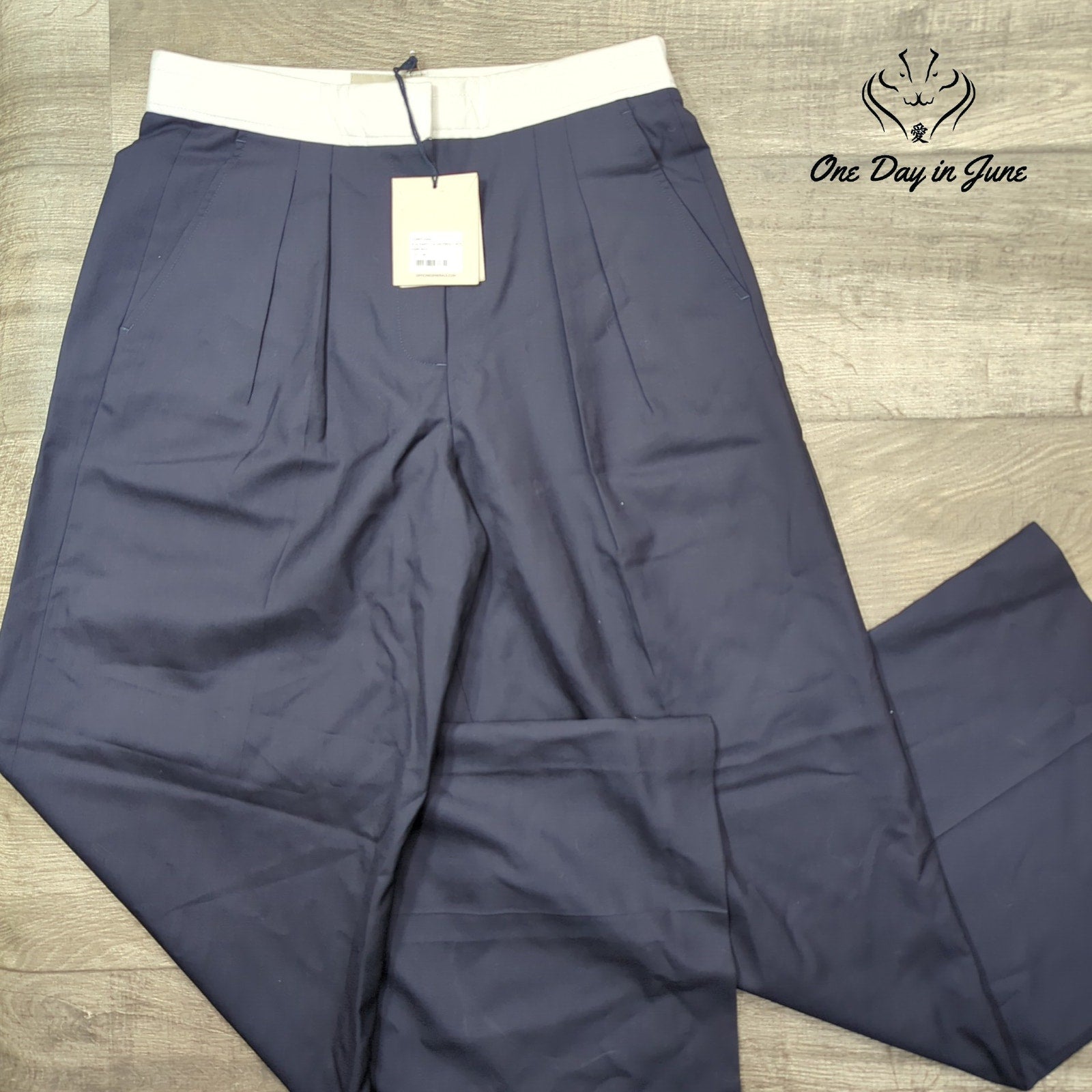 The Elia pants from Officine Generale—crafted from Italian virgin wool that breathes like a Mediterranean breeze through an open convertible at sunset. These wide-leg beauties in deep blue channel the kind of effortless elegance that makes you feel invincible, whether you're navigating a cocktail party or escaping the crushing banality of everyday existence. New with tags, pristine as fresh snow in the mountains, ready to transform your wardrobe into something magnificent and free.