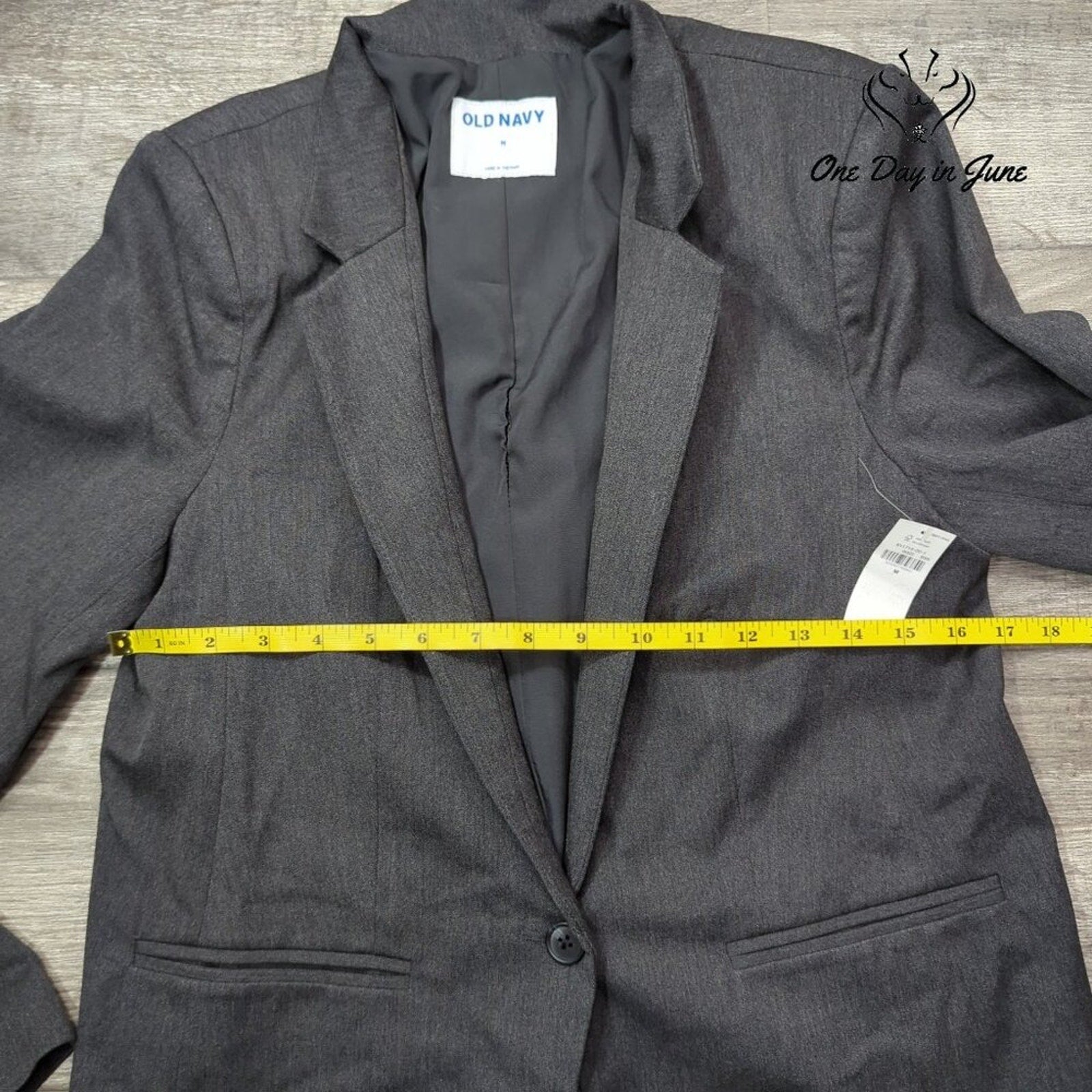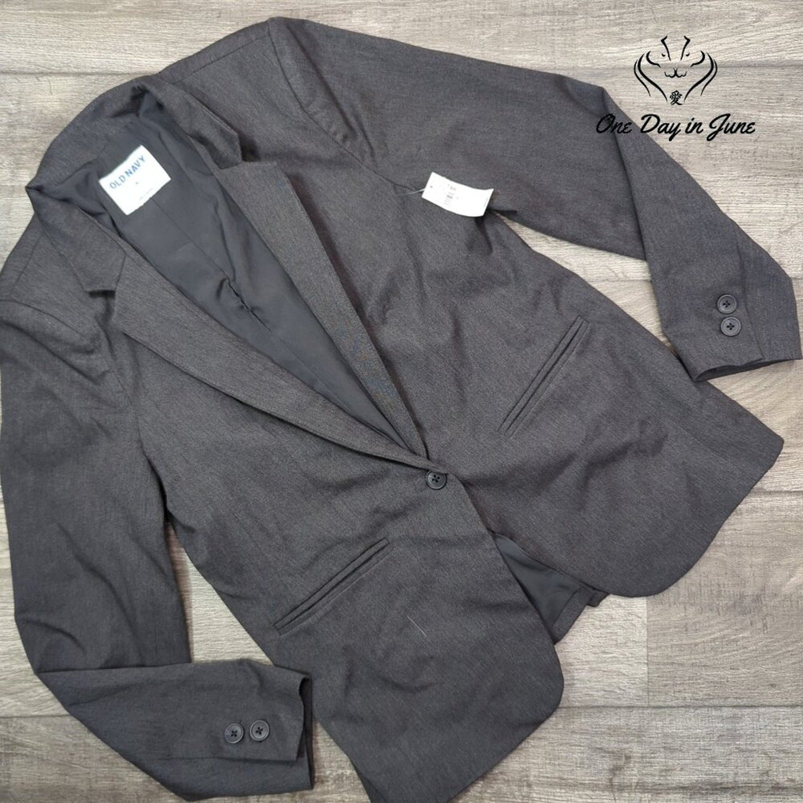 Elevate your wardrobe with this stylish Grey One Button Blazer from Old Navy. Made from a comfortable blend of cotton, viscose, and elastane, this brand-new piece still has its tags and offers the perfect blend of sophistication and versatility for any occasion.