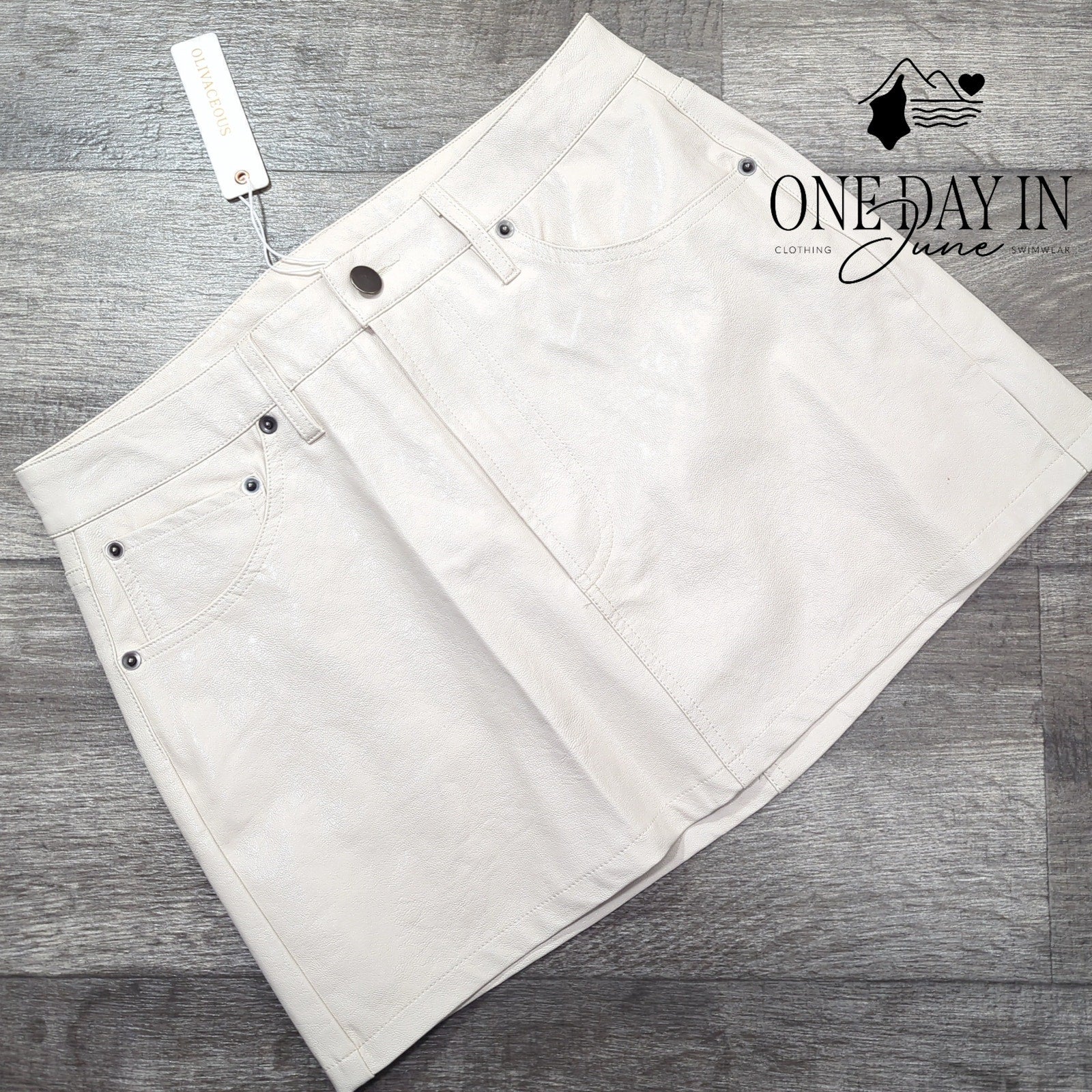 Oh what fun you'll have in this tan faux leather treat, with a skirt so sleek and lined, it can't be beat! From Olivabeous it comes, so cozy and new, a perfect piece to add some style to you!