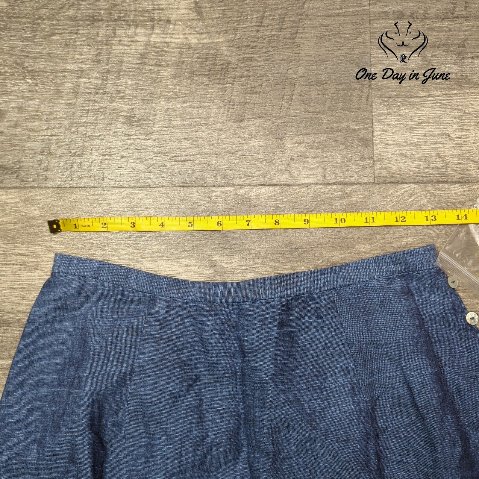 The Bridgehampton skirt, a shimmering mirage of blue linen and cotton, flows like a river of consciousness down to the ankles, whispering tales of seaside escapades and sun-drenched afternoons. This Orvis creation, pristine and untouched, stands ready to embark on a wild journey through the savage heart of summer, its trimmed edges fluttering like the wings of a restless seabird caught in the grip of a fever dream.