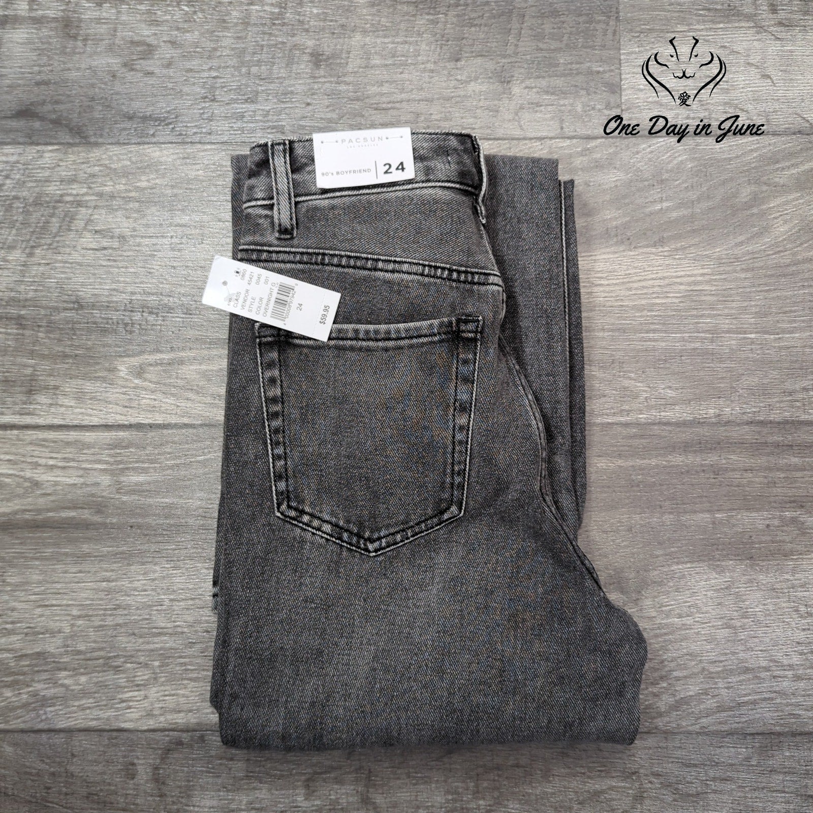 Fear and loathing in the denim aisle, where these black beauties lurk like shadowy visions of a twisted fashion dream. Distressed and dangerous, these 90s Boyfriend jeans from Pacsun are ready to ride shotgun on your next savage journey through the wardrobe of the American youth culture. New with tags, they're a cotton manifestation of rebellion, waiting to cling to your legs like a dark prophecy of style.
