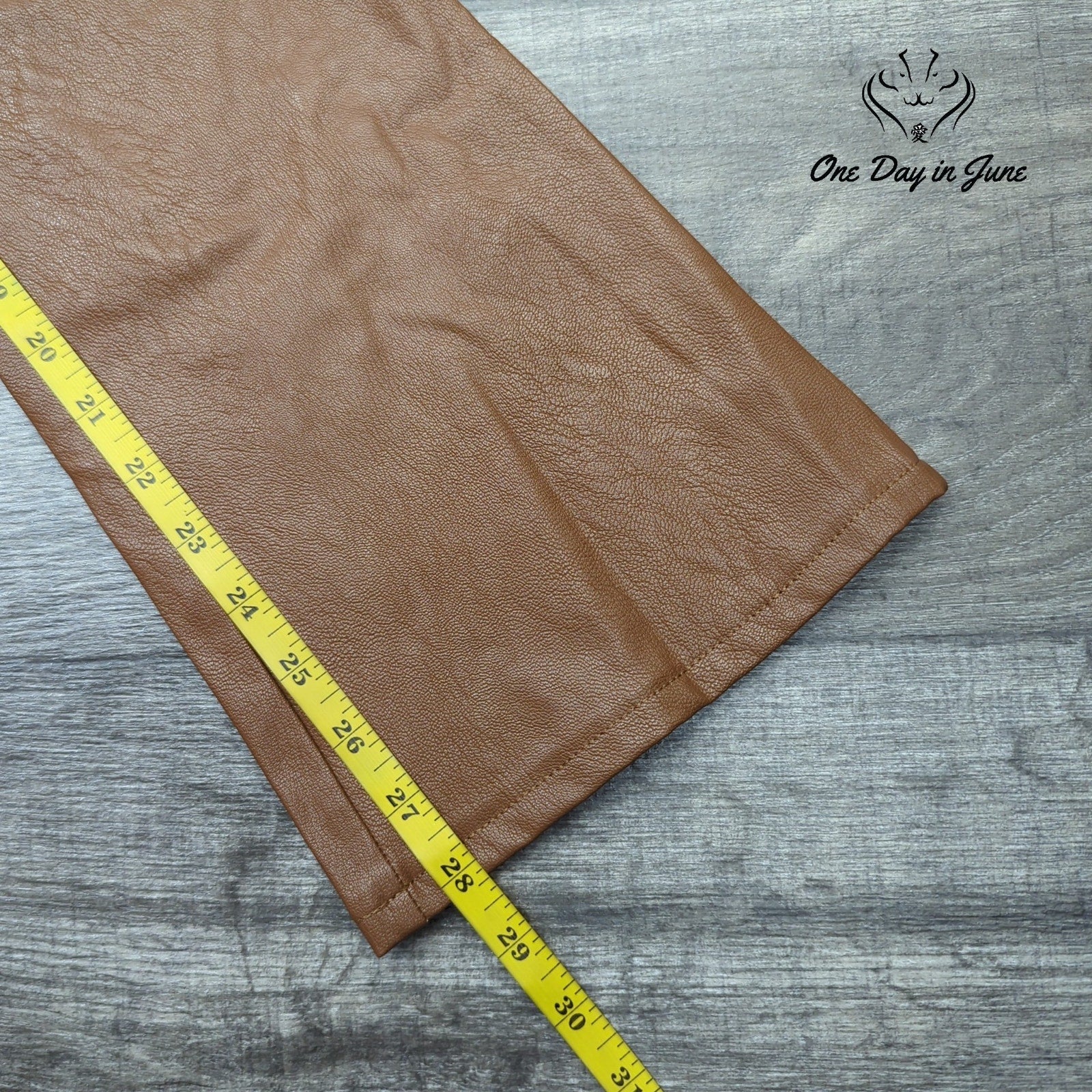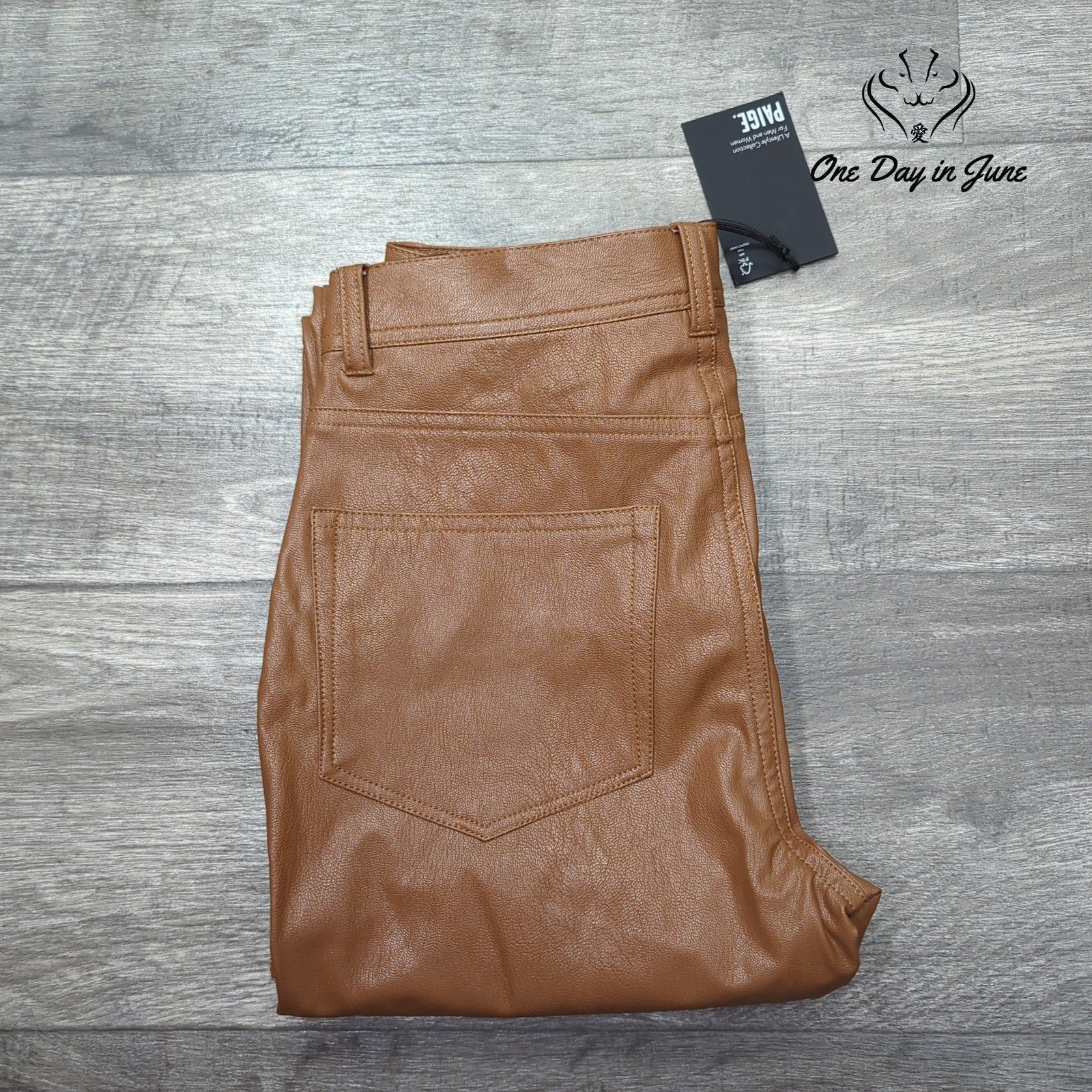 Sumptuous faux leather pants from Paige exude modern luxury with their sleek ankle-length silhouette and subtle flare. These rich brown beauties drape with the perfect balance of structure and stretch, promising to elevate any ensemble with their sophisticated allure.