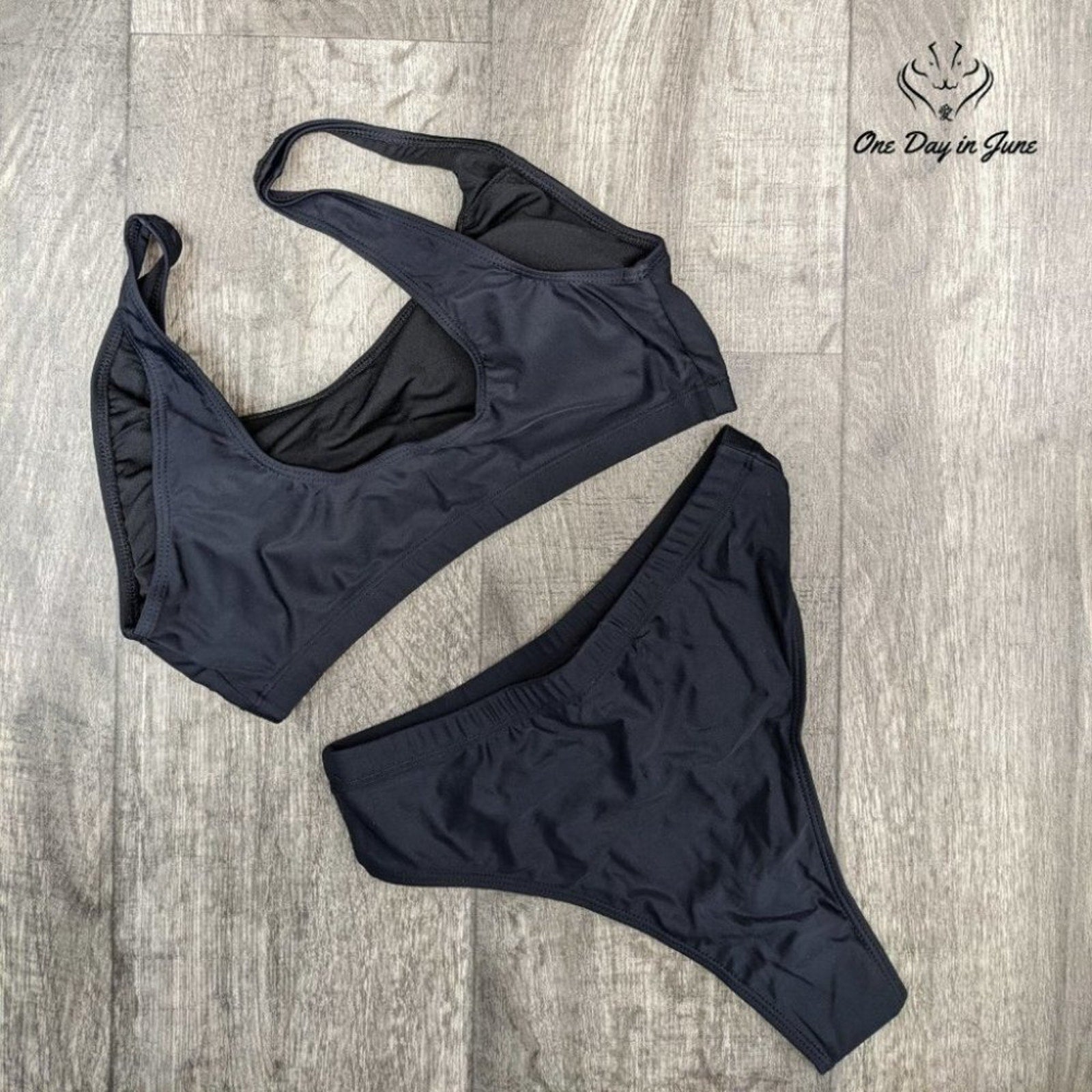 A most becoming swimsuit for the discerning lady, this Black Crop Top High Waist Bikini from Pink Queen is sure to turn heads at the seaside. The modest high waist paired with a daring crop top offers a delightful balance of propriety and allure, crafted from a fine blend of polyester and spandex for both comfort and elegance.