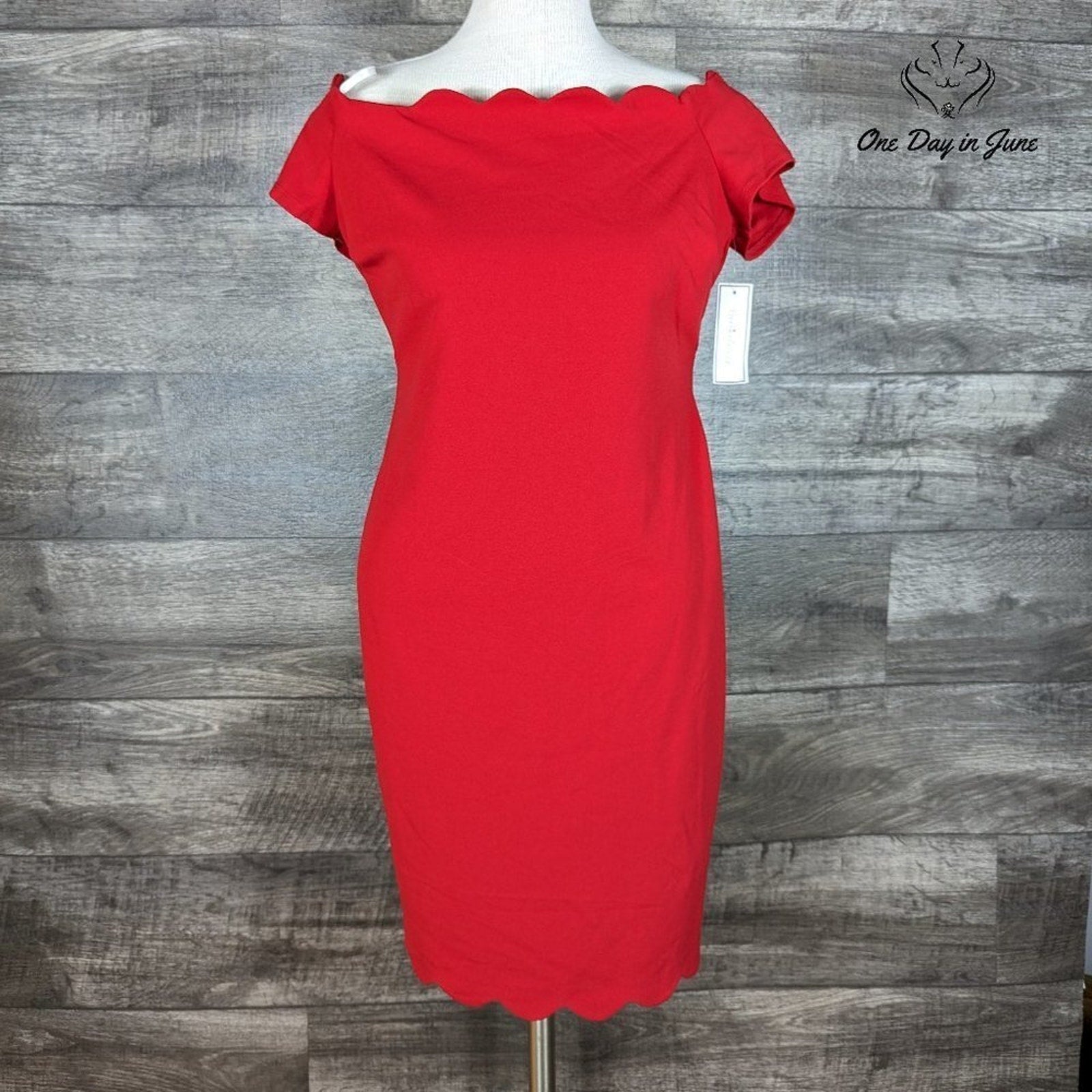 Make a bold statement with this gorgeous Premier Amour Off Shoulder Scallop Edge Mini Dress. Its vibrant red color complements the elegant design, while the polyester/spandex blend ensures a comfortable and flattering fit. Brand new and ready to become your go-to piece for any occasion.
