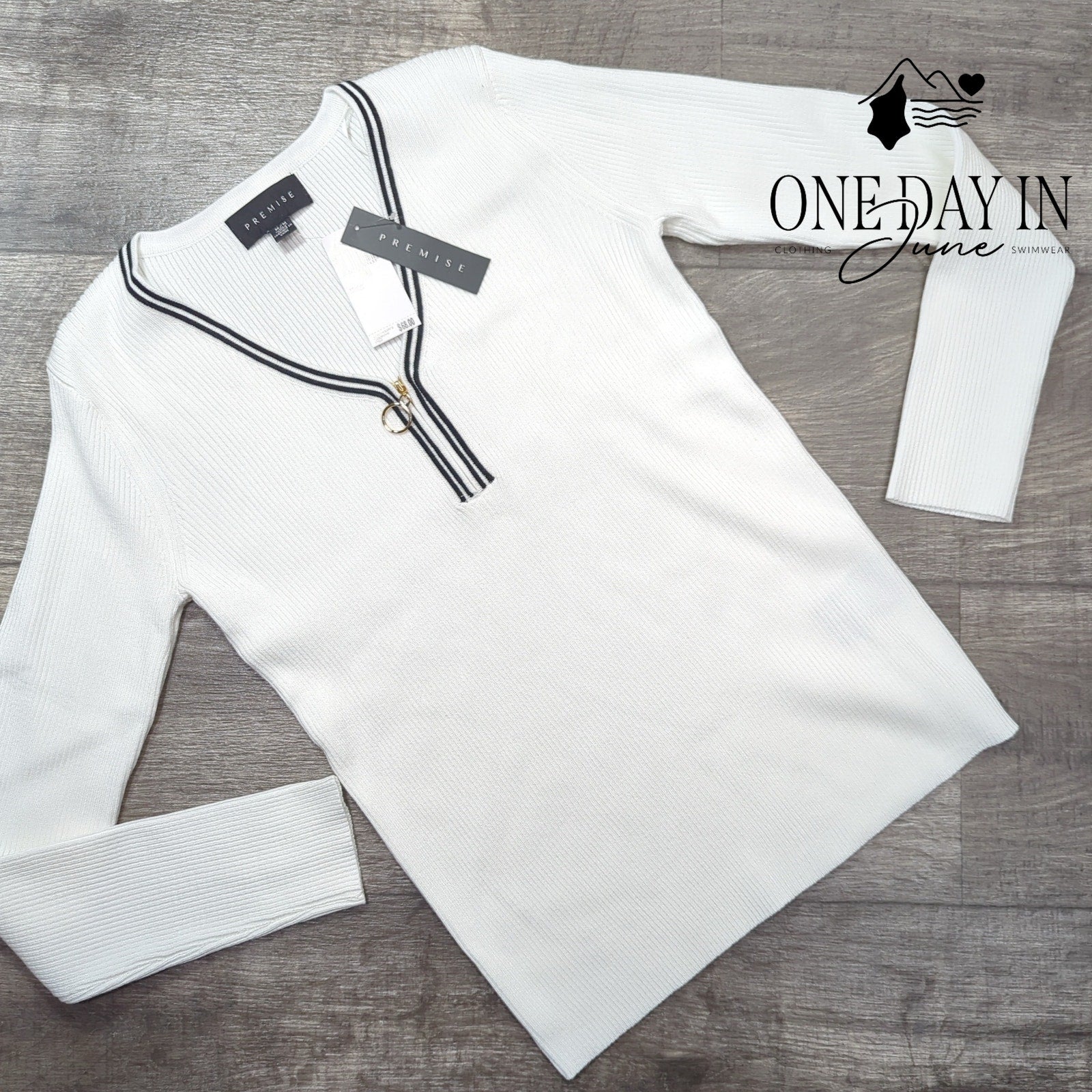 Tags: #RibbedSweater #QuarterZipTop #WhiteLongSleeve