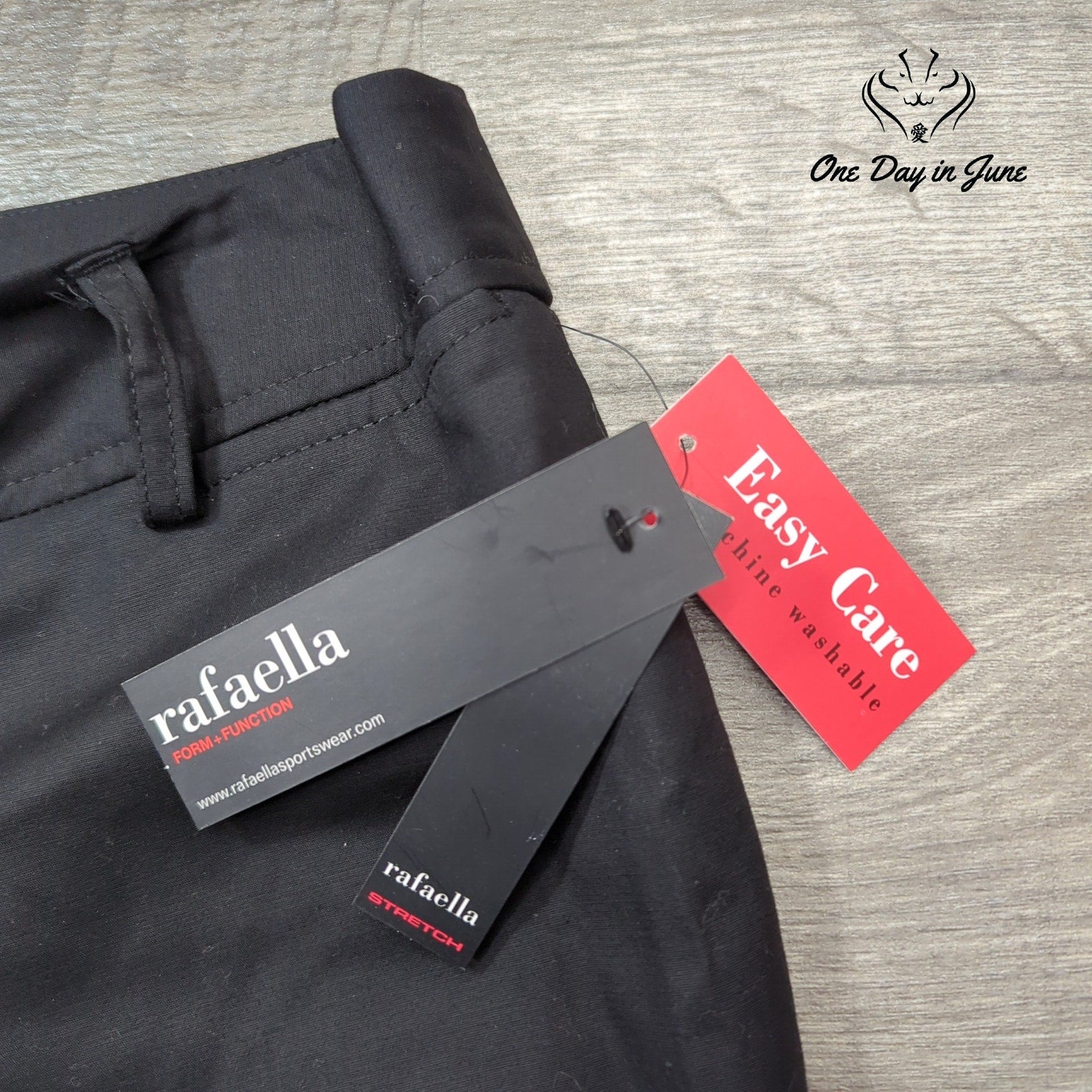 A most becoming pair of black straight-leg trousers by the esteemed house of Rafaella, crafted from a delightful blend of cotton, polyester, and spandex for the utmost in comfort and refinement. These unworn garments, still adorned with their original proclamation of worth, shall prove an invaluable addition to any lady's wardrobe.