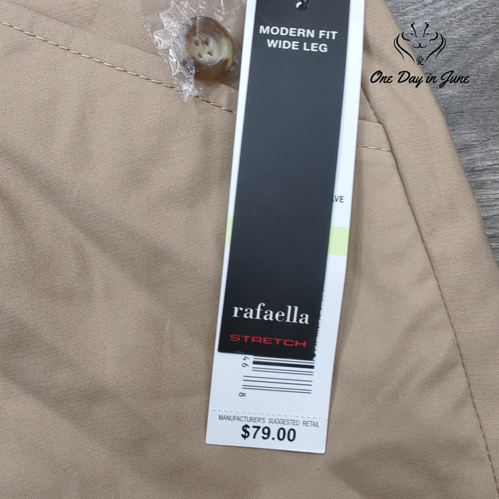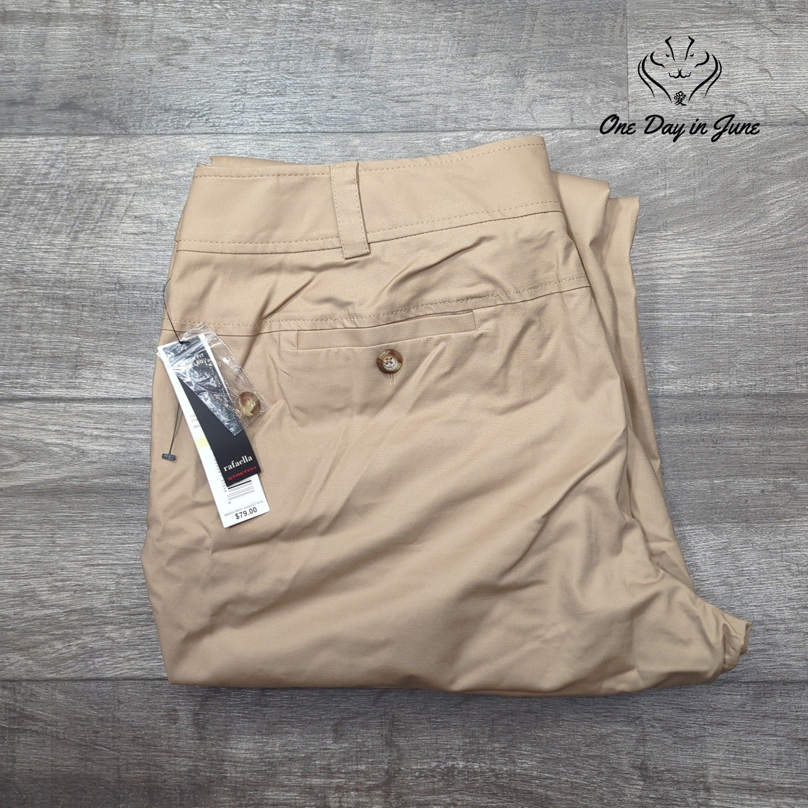 Summer beckons with these pristine Rafaella flat front pants, crafted from a divine blend of cotton and spandex that promises both comfort and sophistication. Their refined tan hue carries the warmth of champagne at twilight, while the graceful silhouette speaks to those endless afternoons when elegance and ease dance as one.