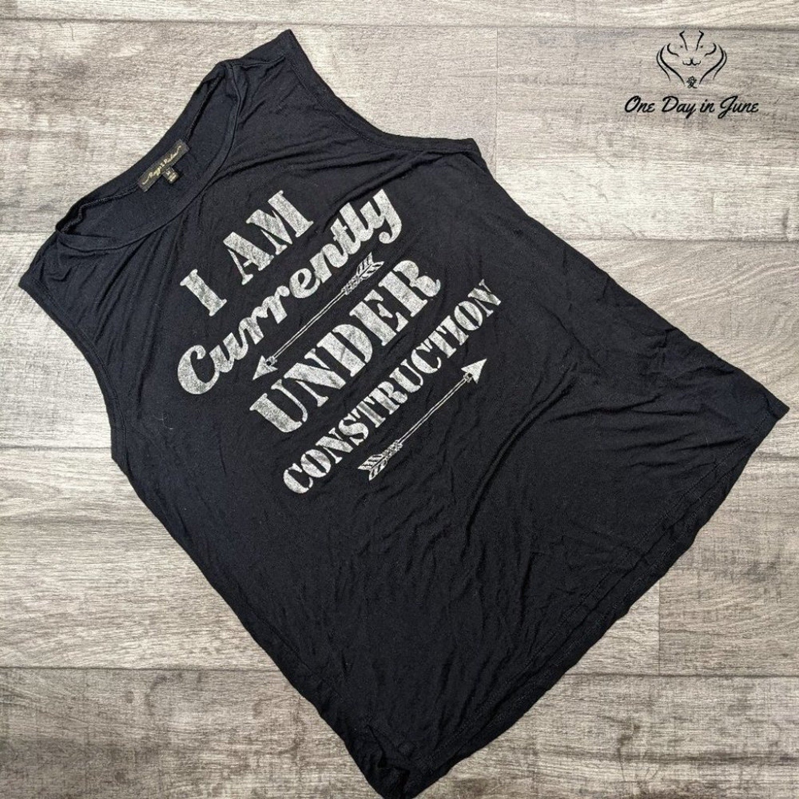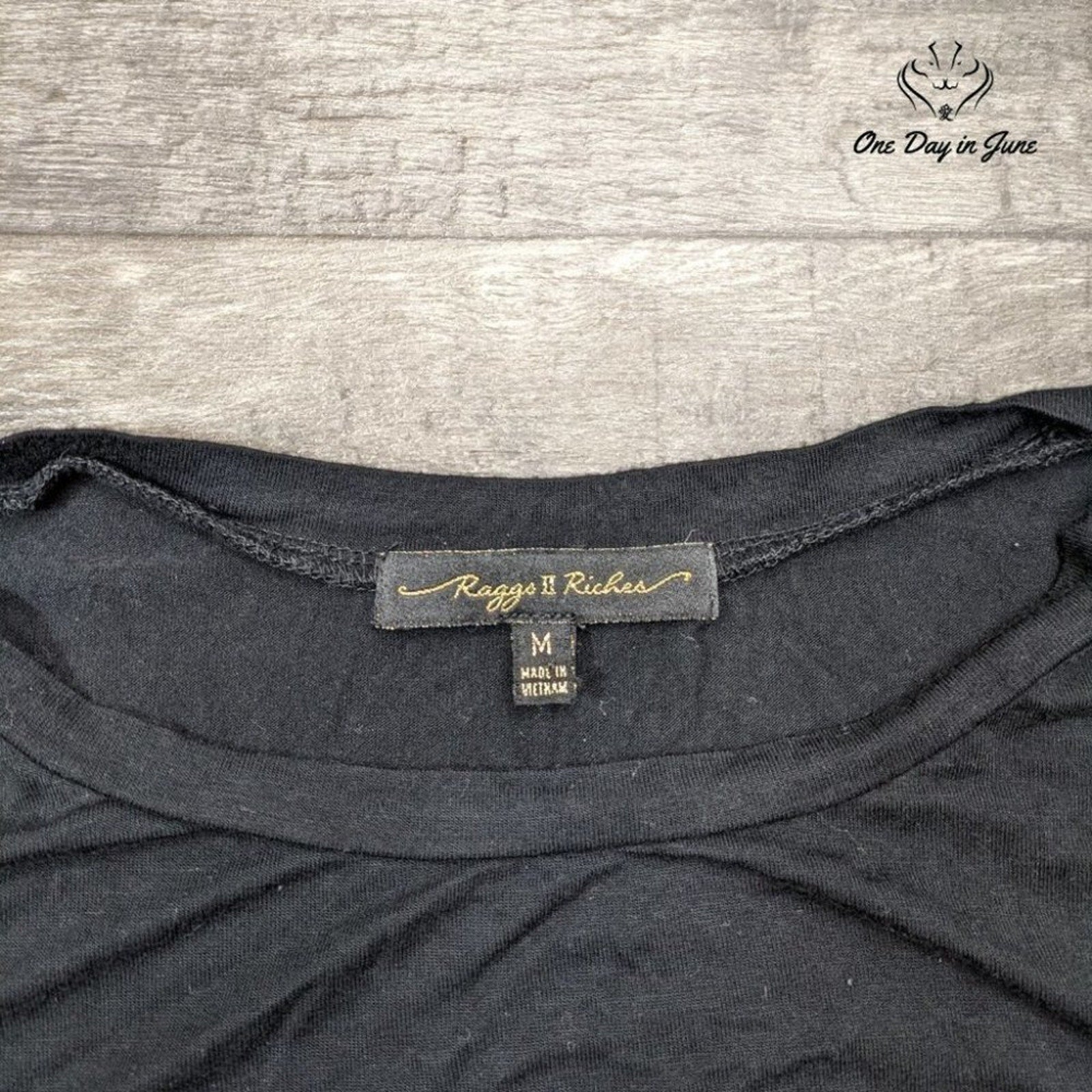 A most elegant sleeveless garment from the esteemed house of Rags 2 Riches, rendered in the deepest black that would not look amiss at a summer assembly in Meryton. The rayon and spandex construction ensures the wearer enjoys both comfort and a flattering silhouette, while its pristine condition suggests it has scarcely been worn to any previous engagements.